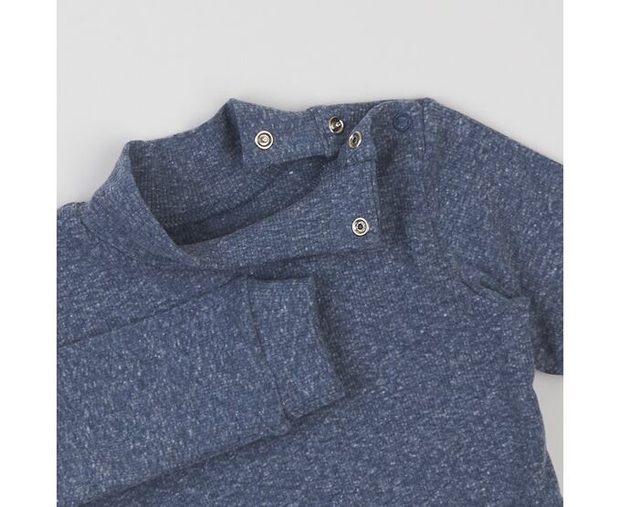 Дитячий боді-гольф з довгим рукавом, з еластичного фактурного полотна преміум якості - рубчику.. Висока стійка, застібка на кнопки на плечі та між ніжками. Манжети рукава та окантовка по низу виробу з основного полотна.