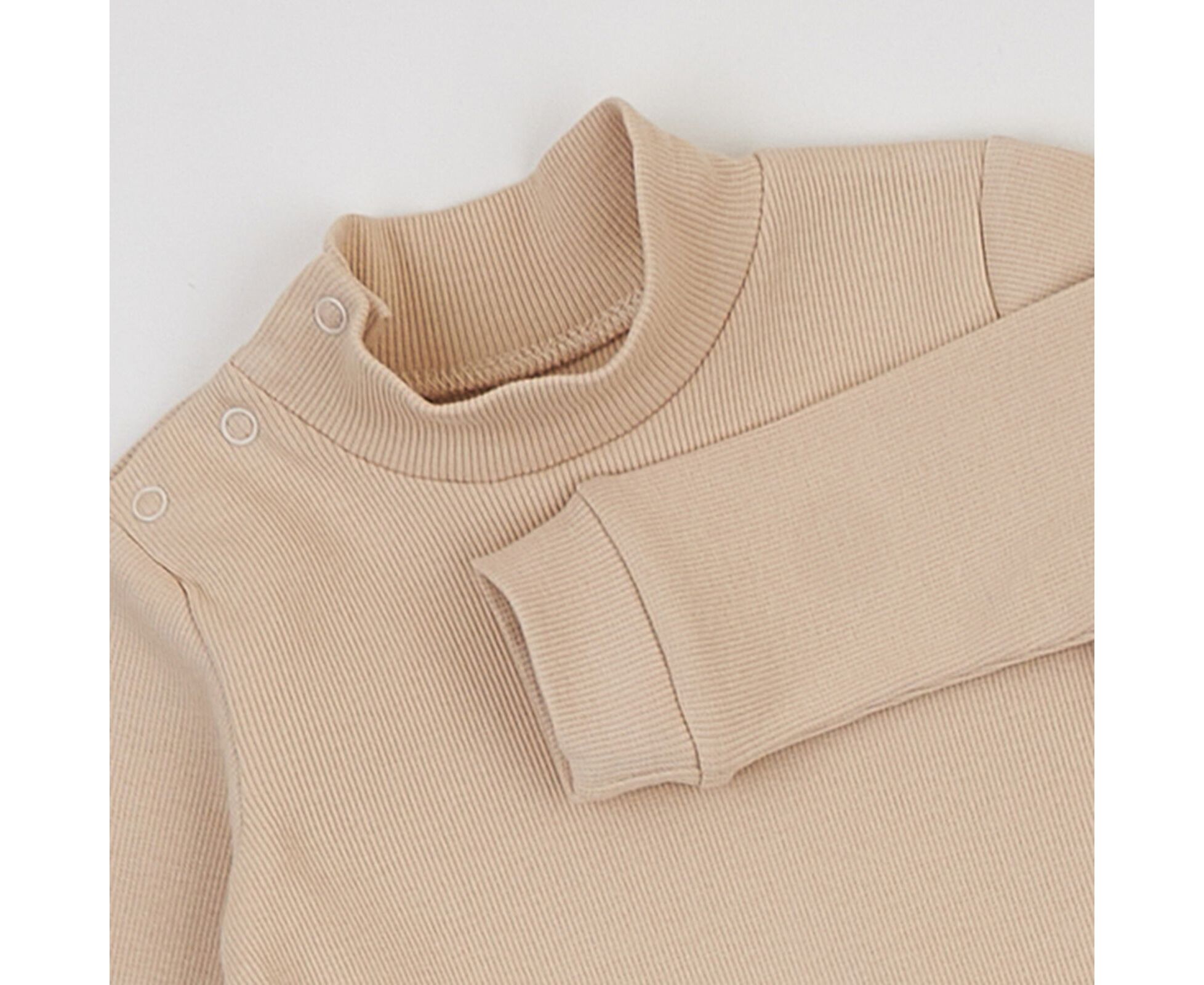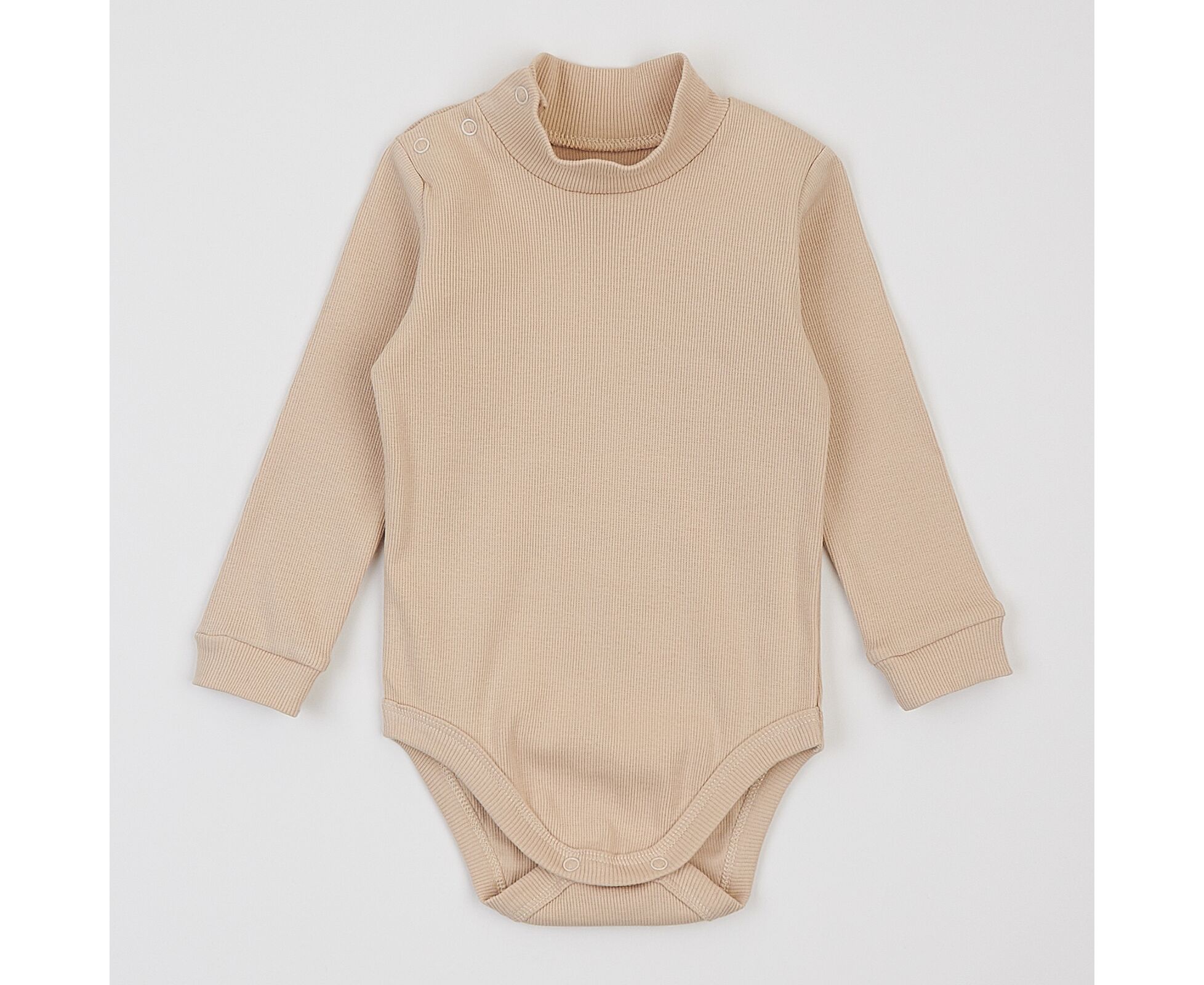 Дитячий боді-гольф з довгим рукавом, з еластичного фактурного полотна преміум якості - рубчику.. Висока стійка, застібка на кнопки на плечі та між ніжками. Манжети рукава та окантовка по низу виробу з основного полотна.