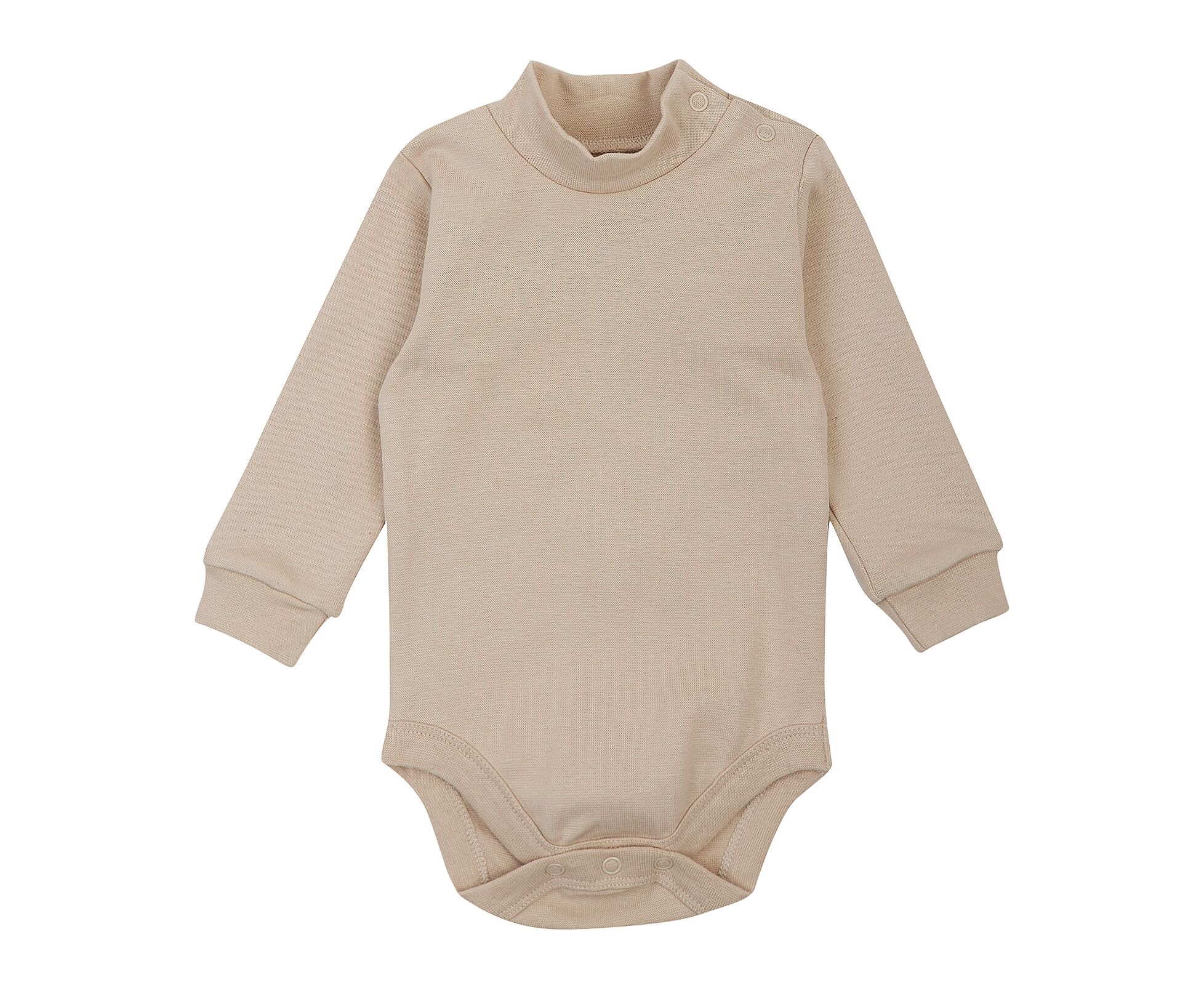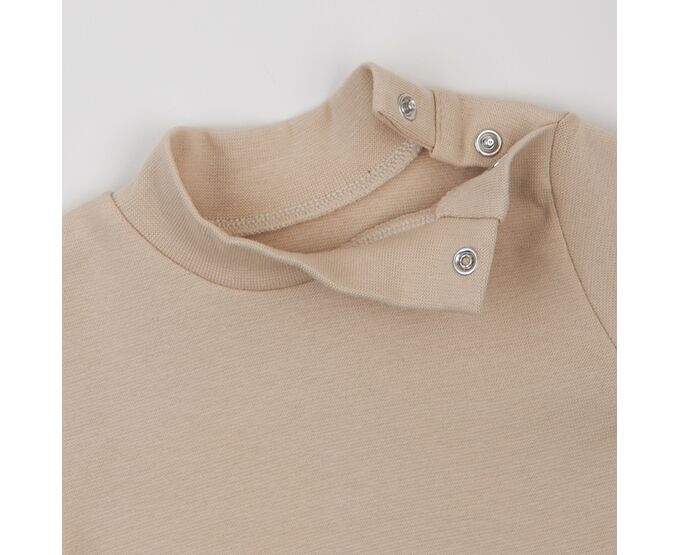 Теплий дитячий боді-гольф з довгим рукавом, з наздвичайно якісної, з приємним на дотик начосом всередині, еластичної рібани з еластаном. Застібка на кнопки по плечу та між ніжками. Манжети рукава та окантовка по низу виробу з основного полотна.