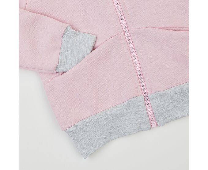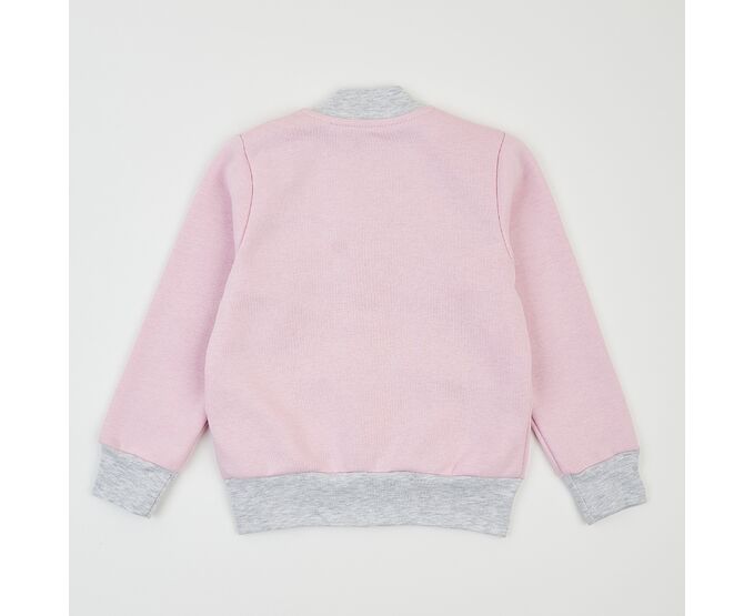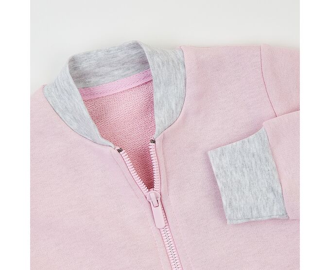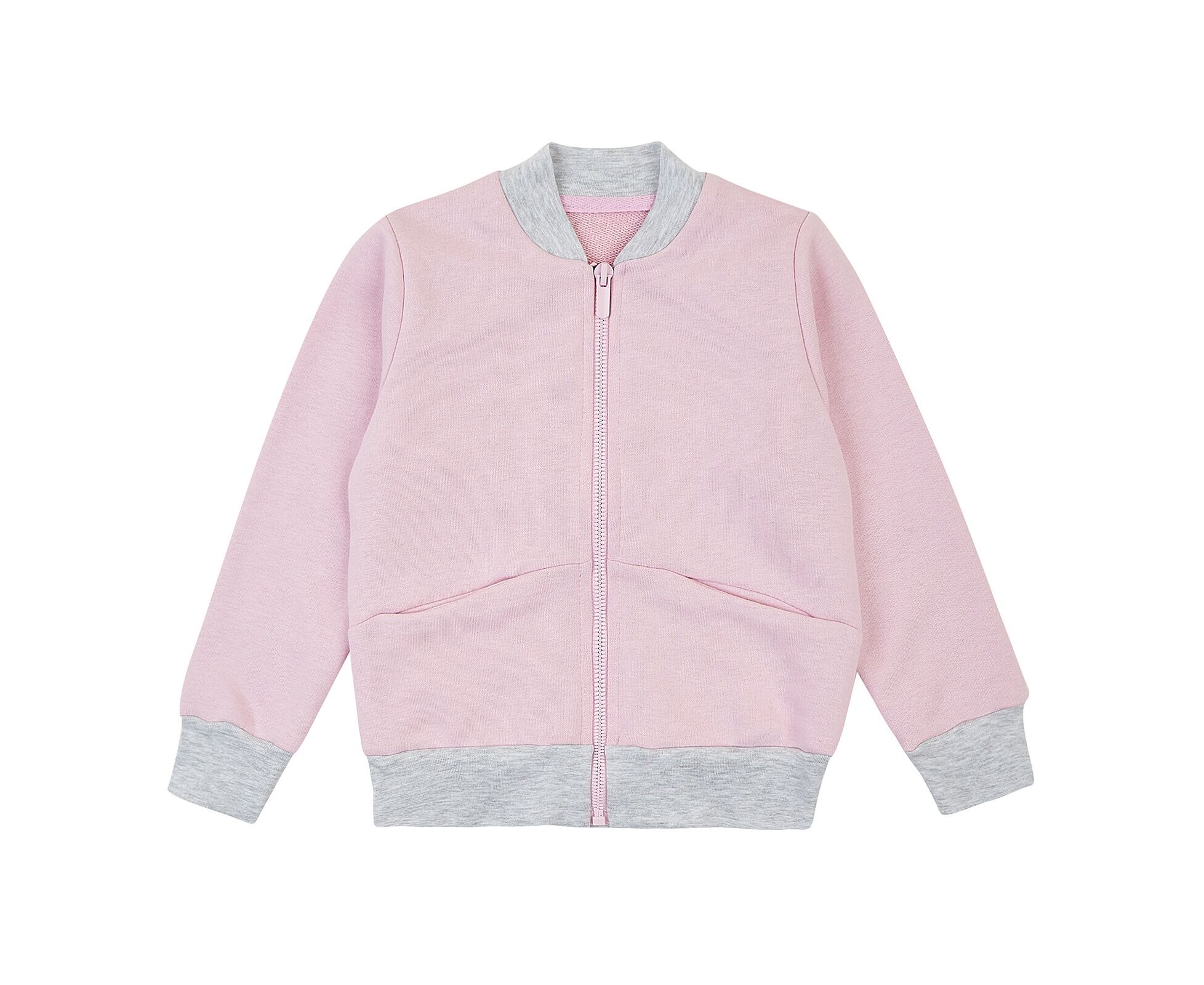 Бомпер для дівчинки. Якісна тканина - тринитка петля - добре тримає форму навіть після багаторазового прання та не скачується. Комір-стійка та манжети по низу рукавів та низу виробу з еластичного полотна, що забезпечує щільне прилягання до тіла. На полочках декоративні підрізи з кишенею-щілочкою та центральна застібка-блискавка. Шви всередині кофти по горловині та вздовж блискавки оброблені декоративною тасьмою, що додає виробу довговічності та вишуканості в розтьобнутому вигляді.
