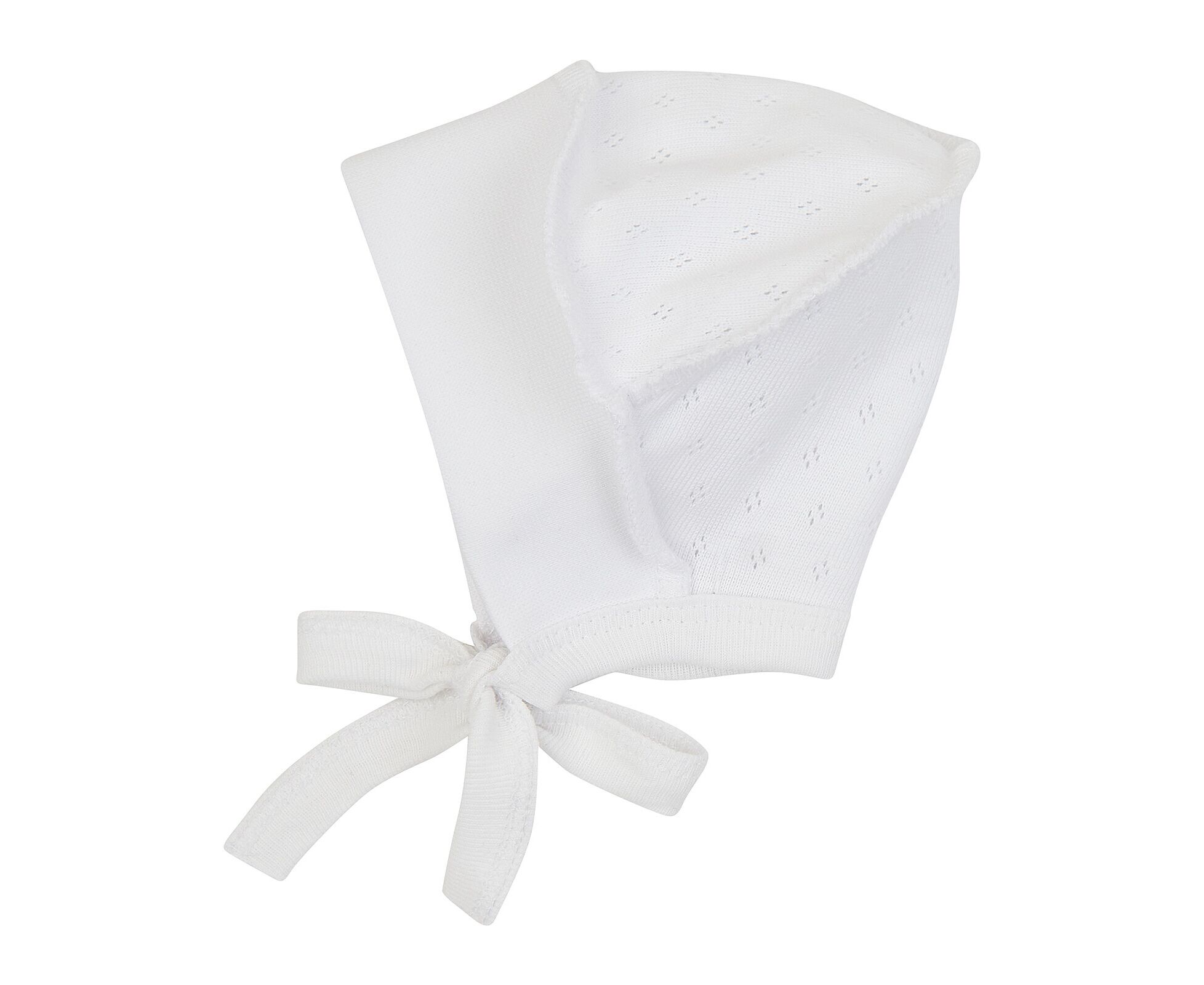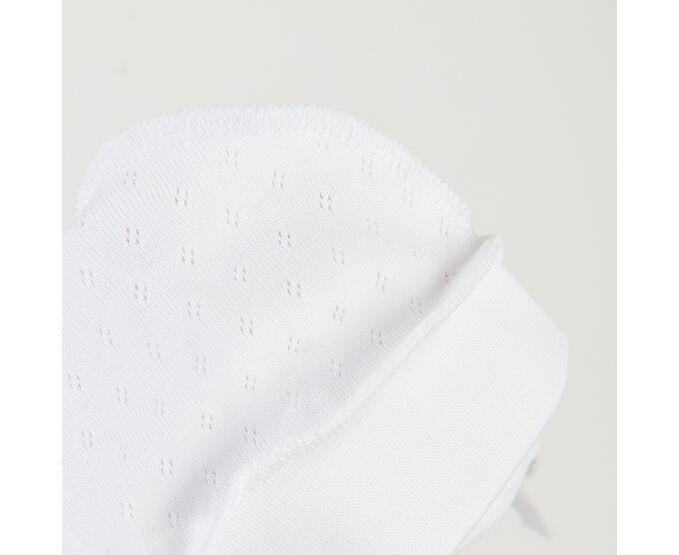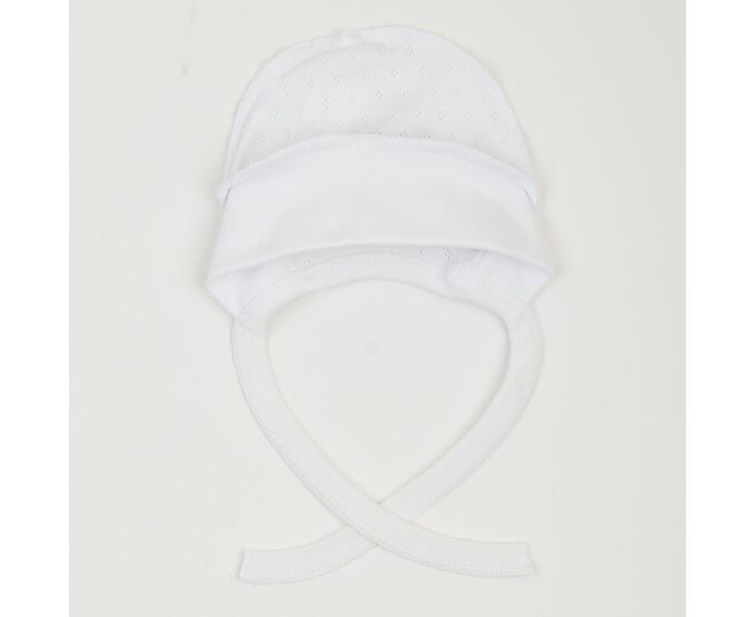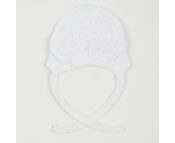 Чепчик для новонародженого, з наздвичайно м'якої, приємної на дотик 100% бавовняної трикотажної тканини - ажур. Передня деталь з еластичного полотна забезпечує ідеальну посадку та щільне прилягання. Шви виробу назовні і не торкаються шкіри дитини, виключаючи будь-який дискомфорт та подразнення.