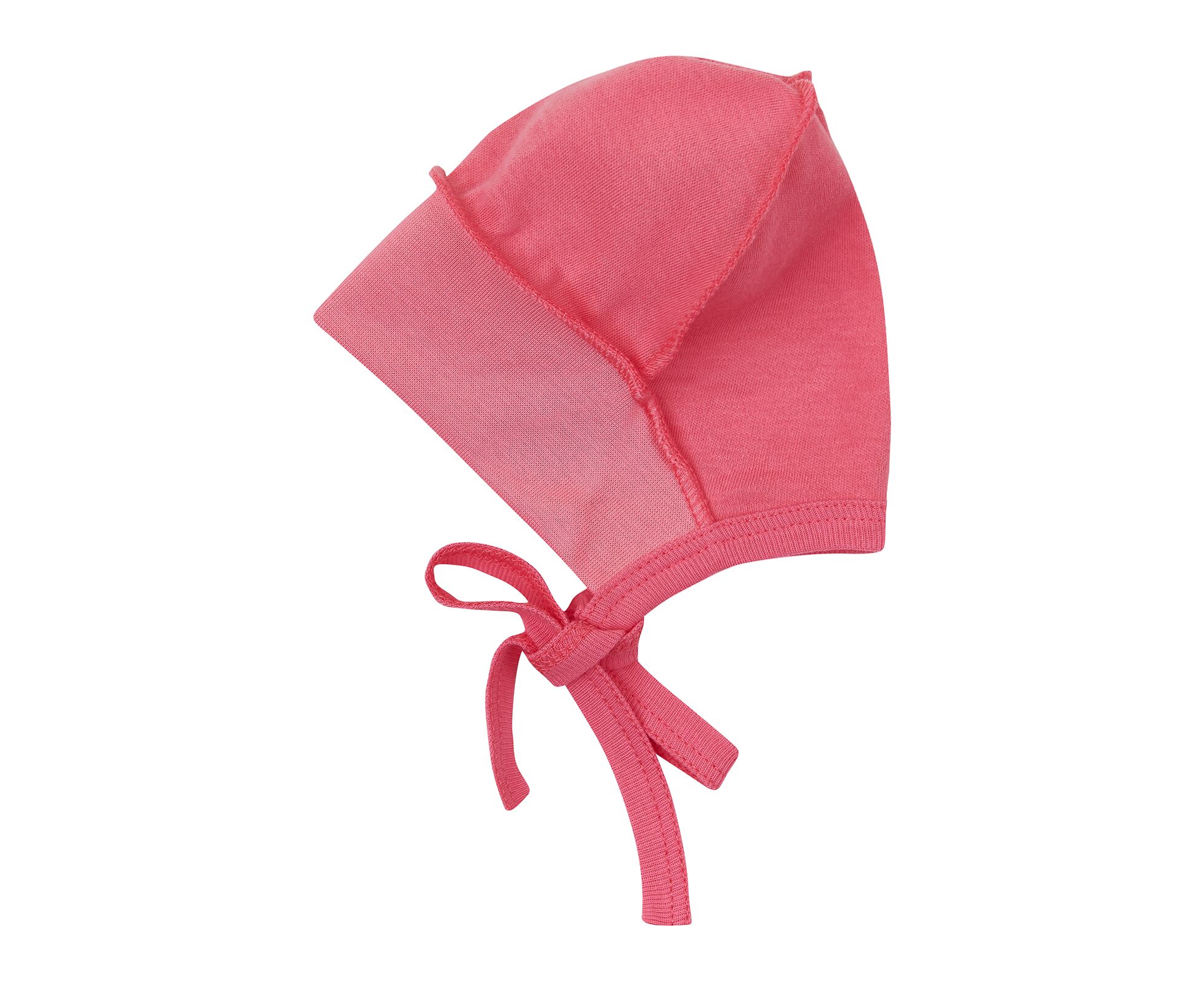 Чепчик із трикотажного бавовняного полотна із зав'язками під підборіддям. По лицьовому вирізу манжета з еластичного полотна, що забезпечує щільність прилягання виробу. Шви виконані назовні, запобігаючи торканню зі шкірою малюка.