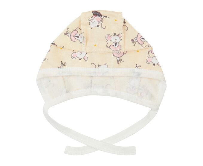 Чепчик для новонароджених, з теплого, м'якенького, приємного на дотик футеру з начосом. Чудова посадка на голівці дитини. Шви назовні, тому не торкаються шкіри голови, що виключає дискомфорт та подразнення. Передній край та зав'язки з тонкої рібани.