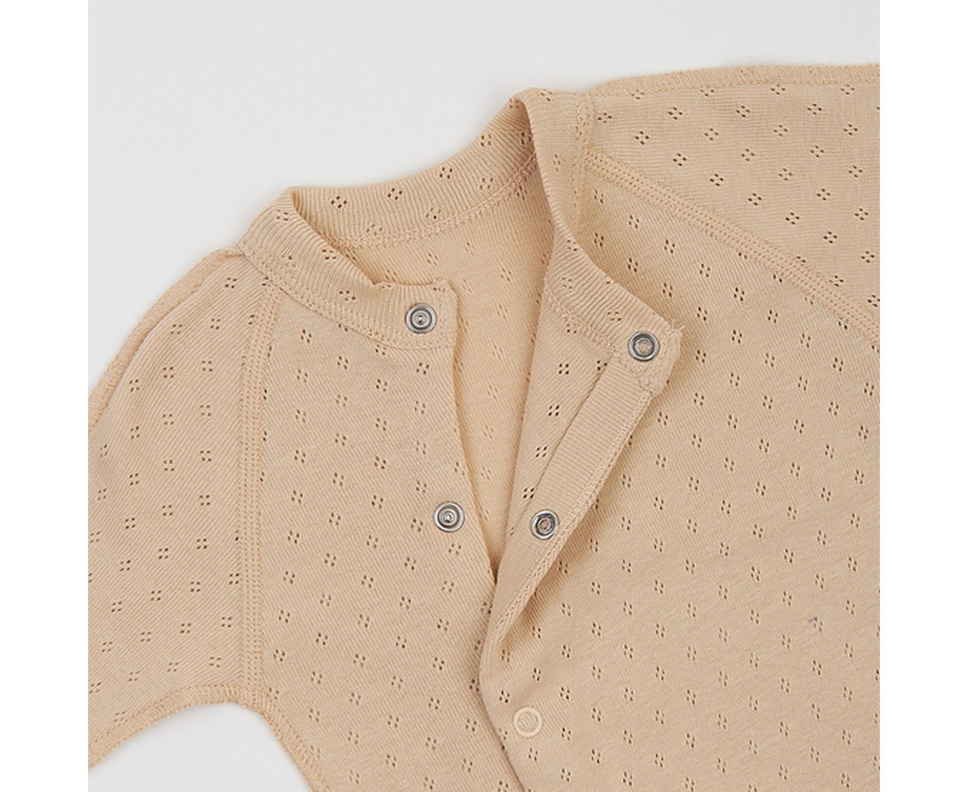 Легкий комбінезон для новонароджених, з наздвичайно м'якої, приємної на дотик 100% бавовняної трикотажної тканини - ажур. Застібка асиметрична на кнопки по борту та по ніжкам. Рукав із закритою ручкою для безпеки Вашого малюка. Комбінезон зі швами назовні, що не торкаються шкіри дитини, виключаючи будь-який дискомфорт та подразнення.