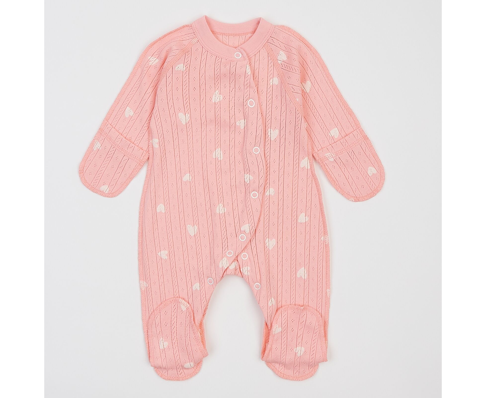 Легкий комбінезон для новонароджених, з наздвичайно м'якої, приємної на дотик 100% бавовняної трикотажної тканини - ажур. Застібка асиметрична на кнопки по борту та по ніжкам. Рукав із закритою ручкою для безпеки Вашого малюка. Комбінезон зі швами назовні, що не торкаються шкіри дитини, виключаючи будь-який дискомфорт та подразнення.