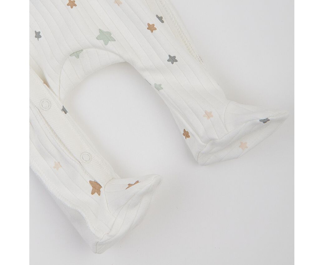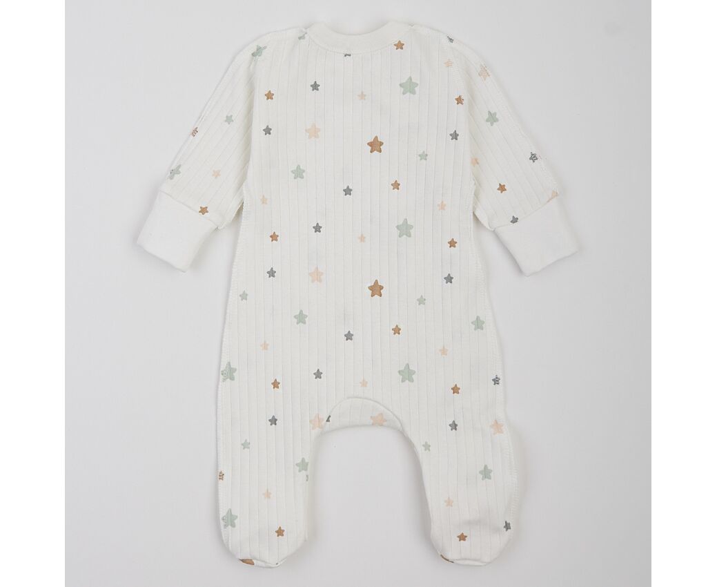Бавовняний чоловічок для новонароджених, з м'якого, приємного на дотик інтерлока преміум якості. Комбінезон з асиметричною застібкою на кнопки по борту та ніжці.. Рукав напівреглан, манжети з еластичної рібани та з відворотом, що дозволяє перетворити їх в царапки. Зрізи горловини та борту оброблені окантовкою з бавовняної рібани. Натуральний склад полотна та шви назовні у комбінезоні, які не торкаються шкіри малюка, виключають будь-який дискомфорт та подразнення.