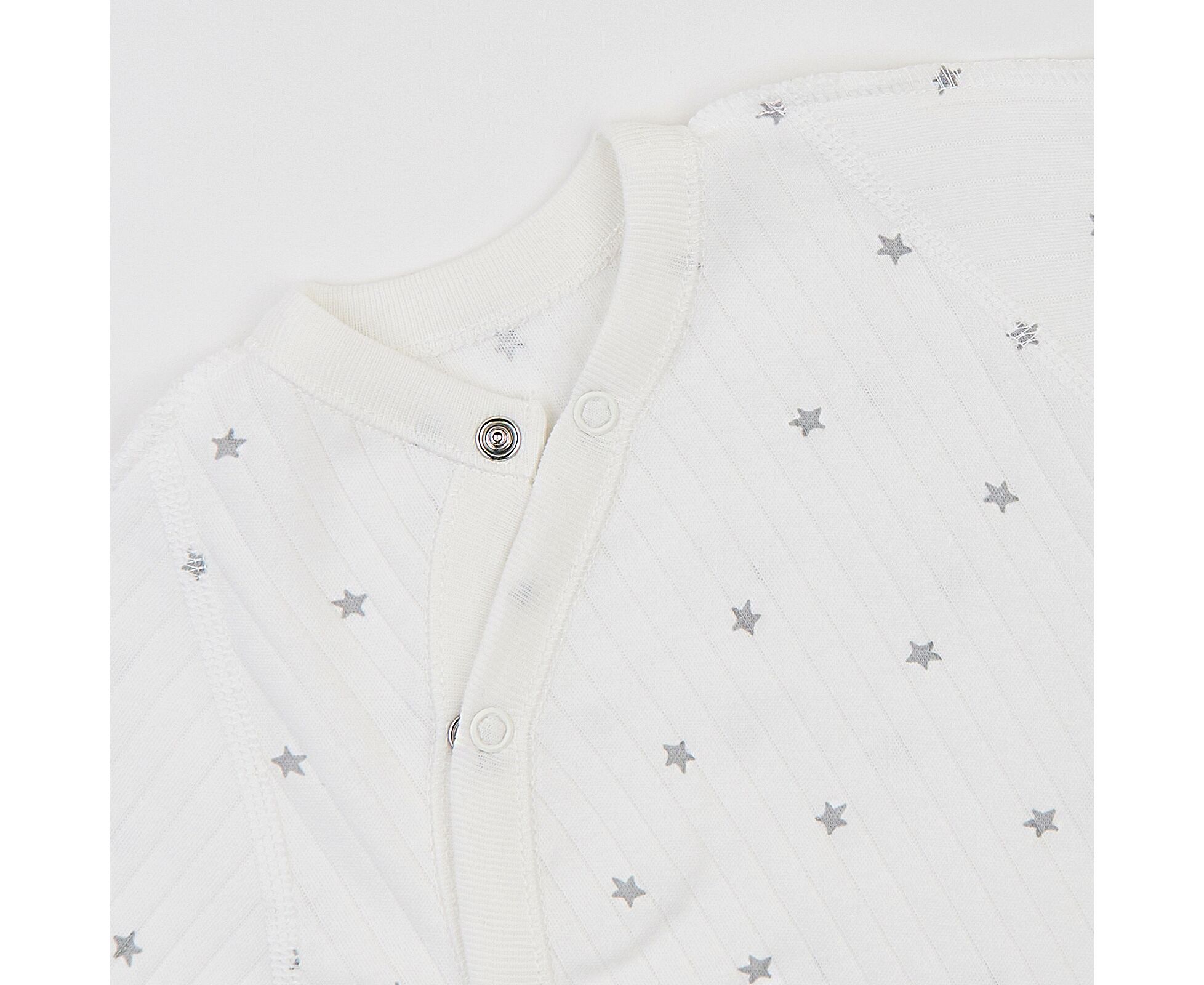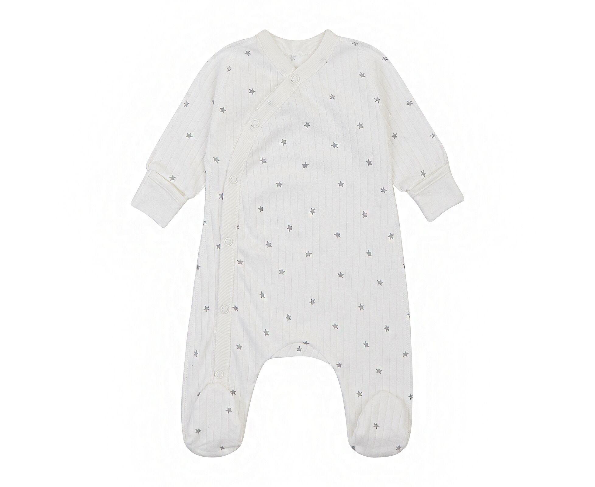 Бавовняний чоловічок для новонароджених, з м'якого, приємного на дотик інтерлока преміум якості. Комбінезон з асиметричною застібкою на кнопки по борту та ніжці.. Рукав напівреглан, манжети з еластичної рібани та з відворотом, що дозволяє перетворити їх в царапки. Зрізи горловини та борту оброблені окантовкою з бавовняної рібани. Натуральний склад полотна та шви назовні у комбінезоні, які не торкаються шкіри малюка, виключають будь-який дискомфорт та подразнення.