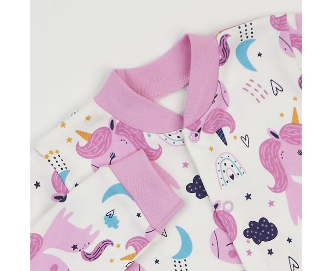 Дитячий чоловічок-спальник з якісної бавовняної трикотажної тканини інтерлок.. Застібка по борту та частково по ніжкам на кнопки. Стійка, манжети рукавів та манжети по ніжкам з еластичної рібани.