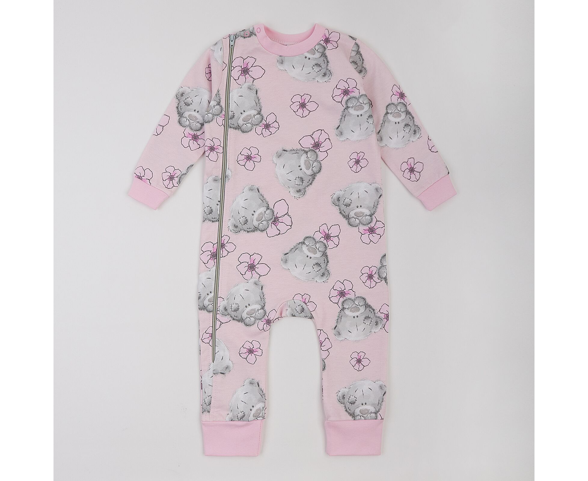 Теплий чоловічок з м'якого, приємного на дотик футеру з начосом. Застібка асиметрична на блискавку на переді та кнопки на плечі. Стійка, манжети рукавів та манжети по ніжкам з еластичної рібани.