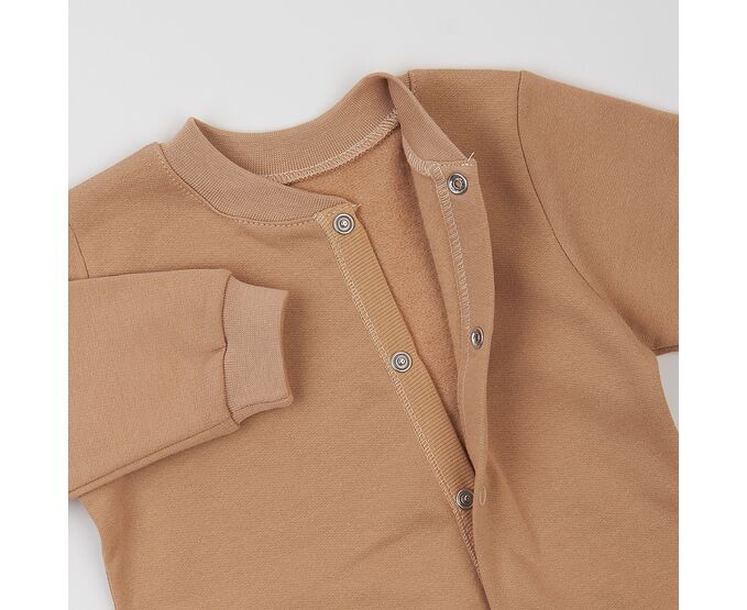 Тепленький чоловічок для малюків, з м'якого, приємного на дотик футеру з начосом. Комбінезон з асиметричною застібкою на кнопки по борту та ніжці.. Рукав втачний, стійка та манжети з еластичної рібани.