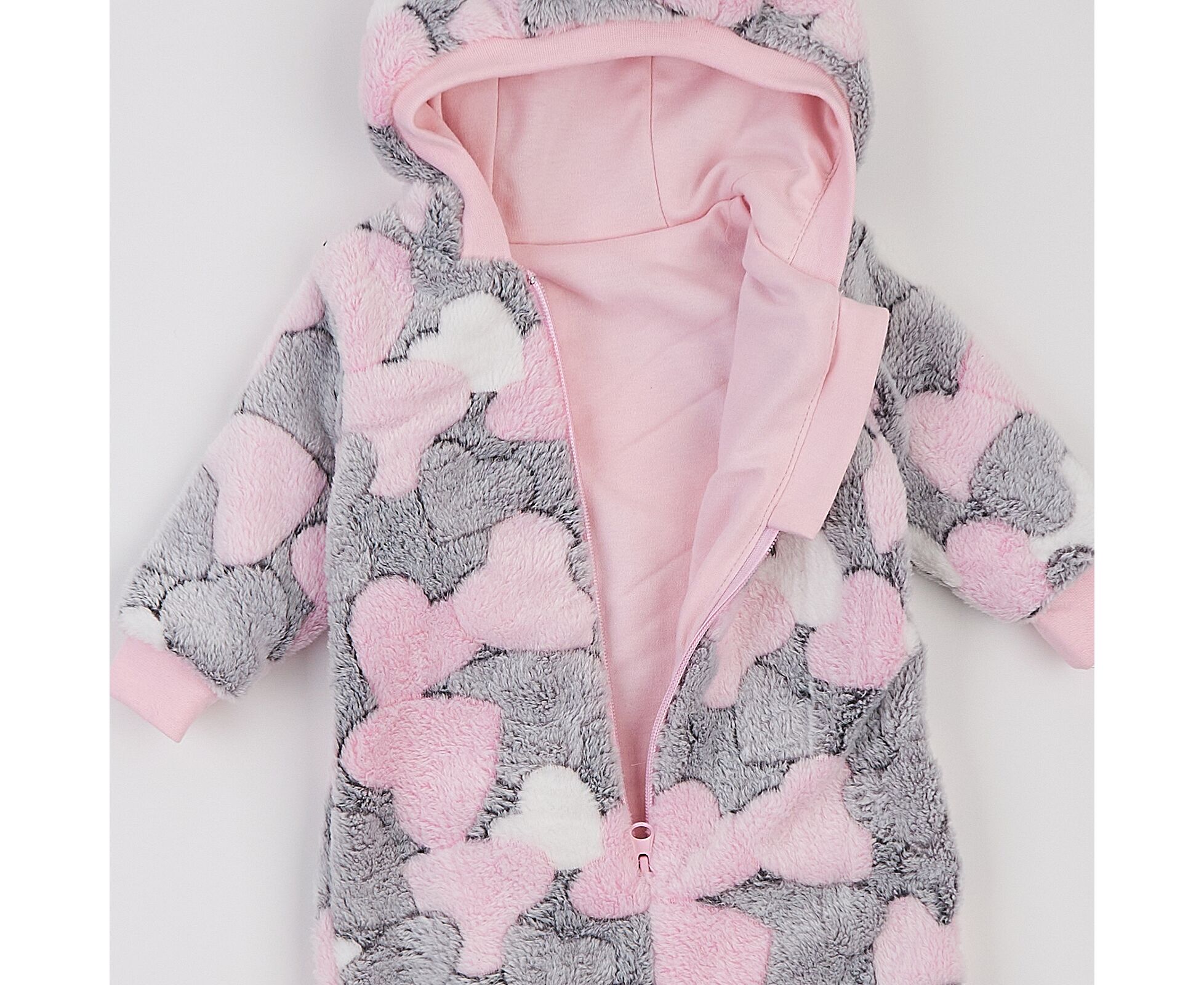серця+рожевий+сірий 74 (6-9 міс.) для дівчинки рожевий велсофт Малыши/Человечки/Человечки утепленные 74