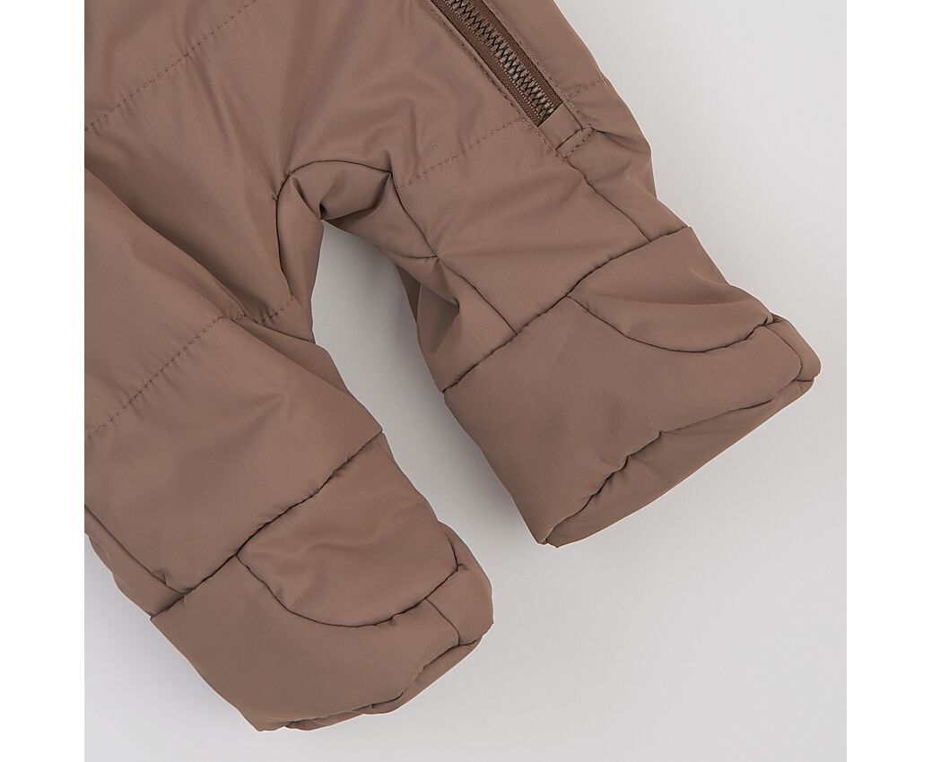 Стильний демісезонний дитячий комбінезон з каптуром та закритими ніжками. Виготовлений з якісної матової плащовки з особливим просоченням, яке забезпечує водовідштовхувальні та вітрозахисні властивості. Простьобаний малюнком хвилею, з утеплювачем синтепух щільністю 150г/кв.м, який добре зберігає тепло, форму та об'єм, навіть після багаторазового стиснення. Підкладка комбінезону (крім каптура) з бавовняного трикотажного полотна преміум якості. Застібка асиметрична на блискавку по переду з продовженням по ніжці для зручності надягання. Низ рукавів з відворотом на еластичній гумці, що захистить долоньки вашого малюка. По передньому краю каптура еластична тасьма, для щільності прилягання каптура.