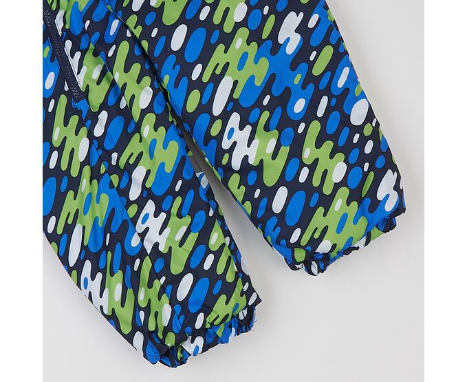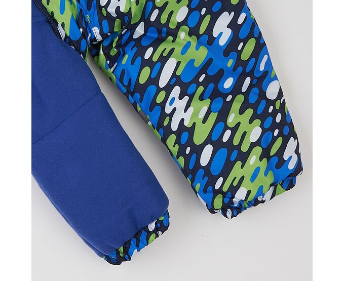 Демісезонний дитячий комбінезон від українського виробника "Ляля". Комбінезон з каптуром з вологовідштовхувальної плащовки з просоченням, підкладка з теплого та приємного на дотик флісу, утеплювач синтепух (щільністю 150г/кв.м) , який добре зберігає форму та об'єм, навіть після багаторазового стиснення. Застібка асиметрична, на якісній блискавці, низ ніжок та рукавів на еластичній тасьмі. Для полегшення надягання на дитину виворіт рукавів з гладкої тканини підкладки. Зпереду і ззаду комбінезон оздоблений світловідбивними елементами.