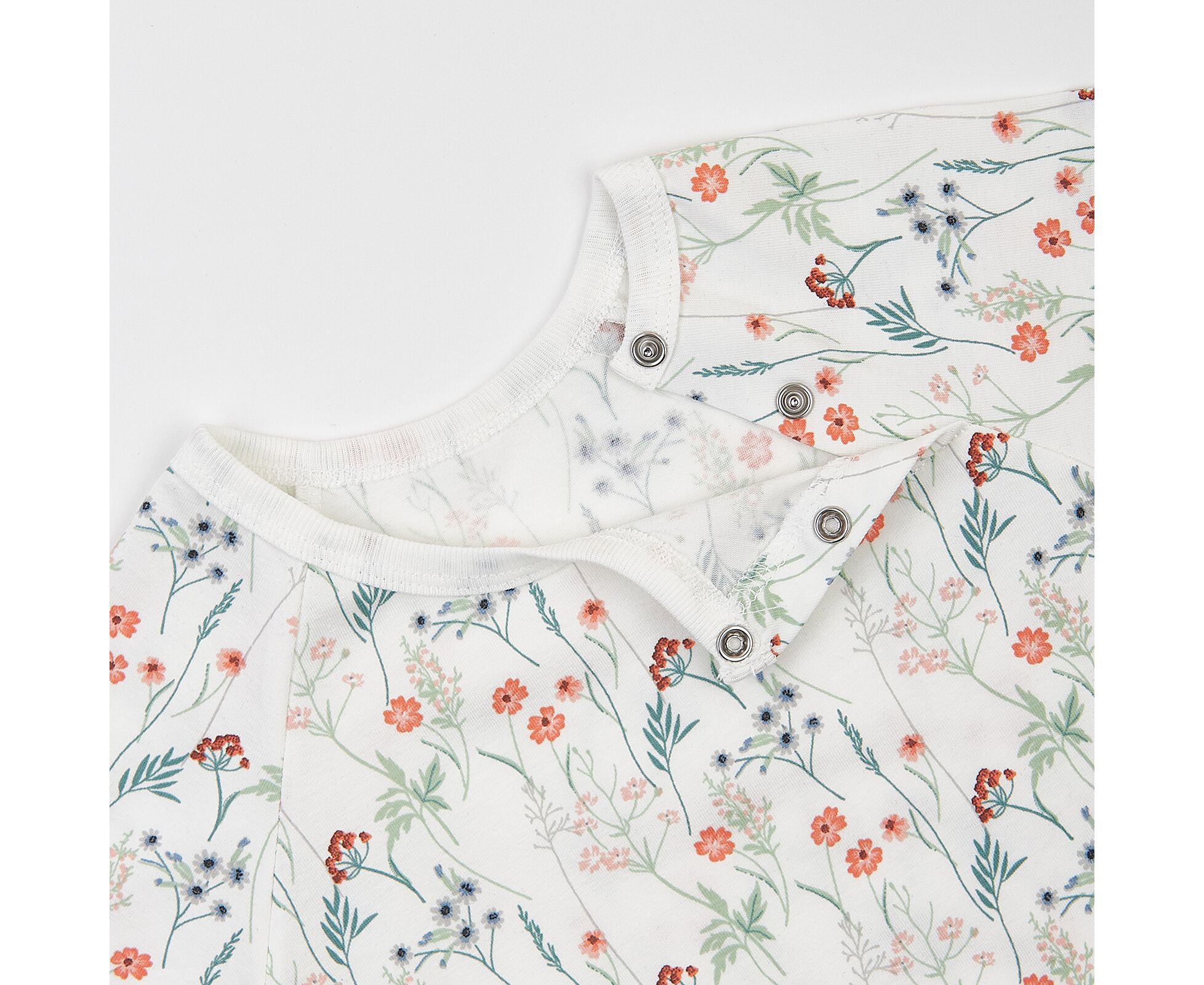 Стильна футболка для дівчинки. Виготовлена з тоненького, повністю бавовняного інтерлоку преміум-якості, переплетення якого забезпечує тканині невелику еластичність, а значить і зручність надягання виробу, Футболка з круглим вирізом горловини з пришивною планкою, з рукавом реглан та застібкою на кнопки в шві рукава.