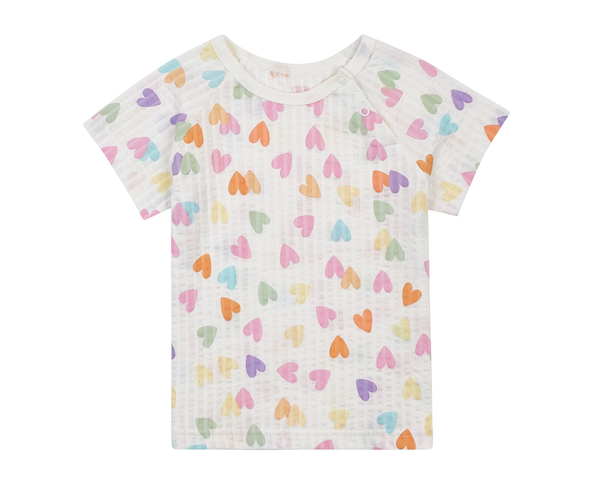 Стильна футболка для дівчинки. Виготовлена з тоненького, повністю бавовняного інтерлоку преміум-якості, переплетення якого забезпечує тканині невелику еластичність, а значить і зручність надягання виробу, Футболка з круглим вирізом горловини з пришивною планкою, з рукавом реглан та застібкою на кнопки в шві рукава.