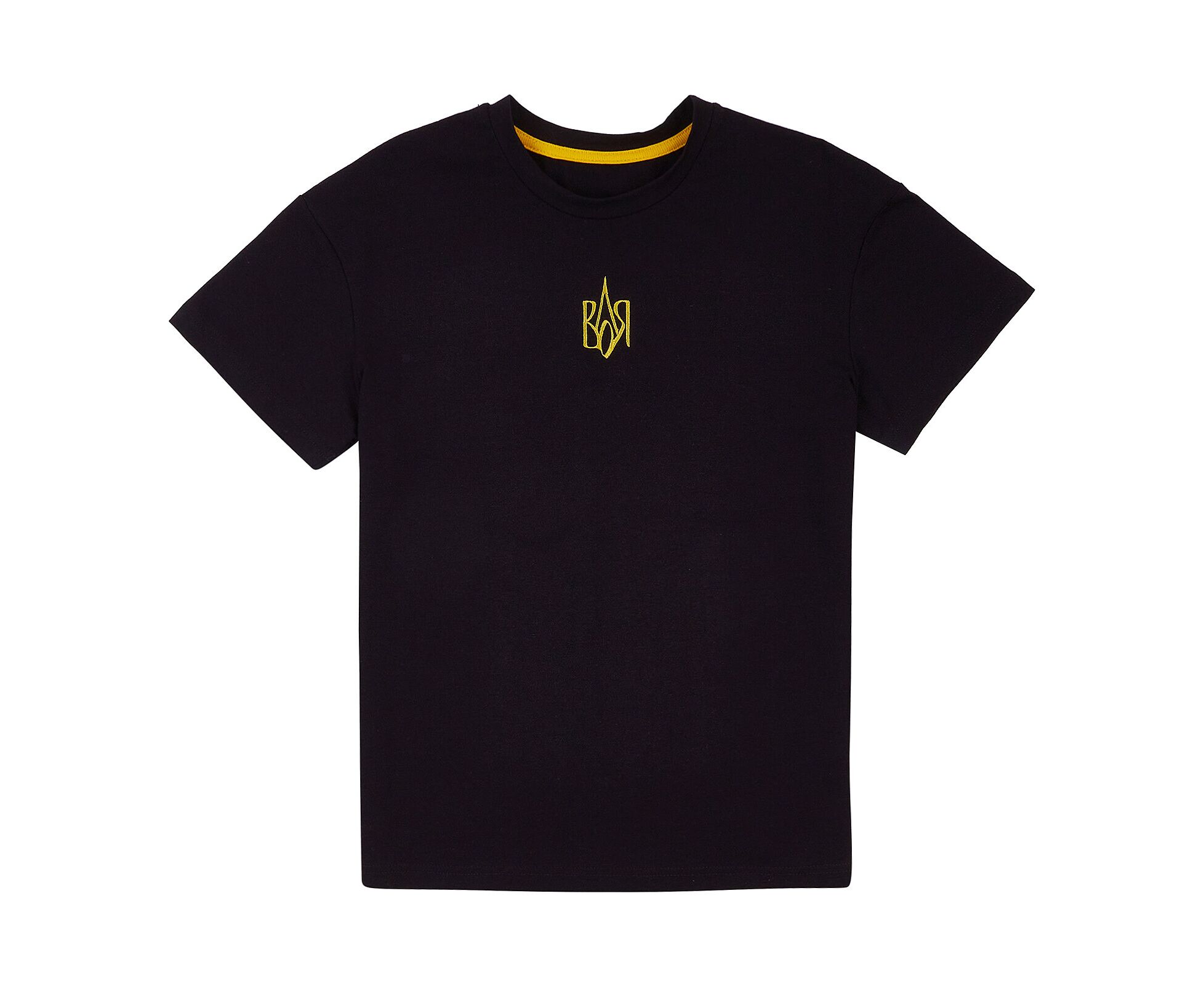Футболка з патріотичною вишивкою спереду, з бавовняної тканини з еластаном. Рукав спущений, горловина спинки з оздоблювальним лампасом..