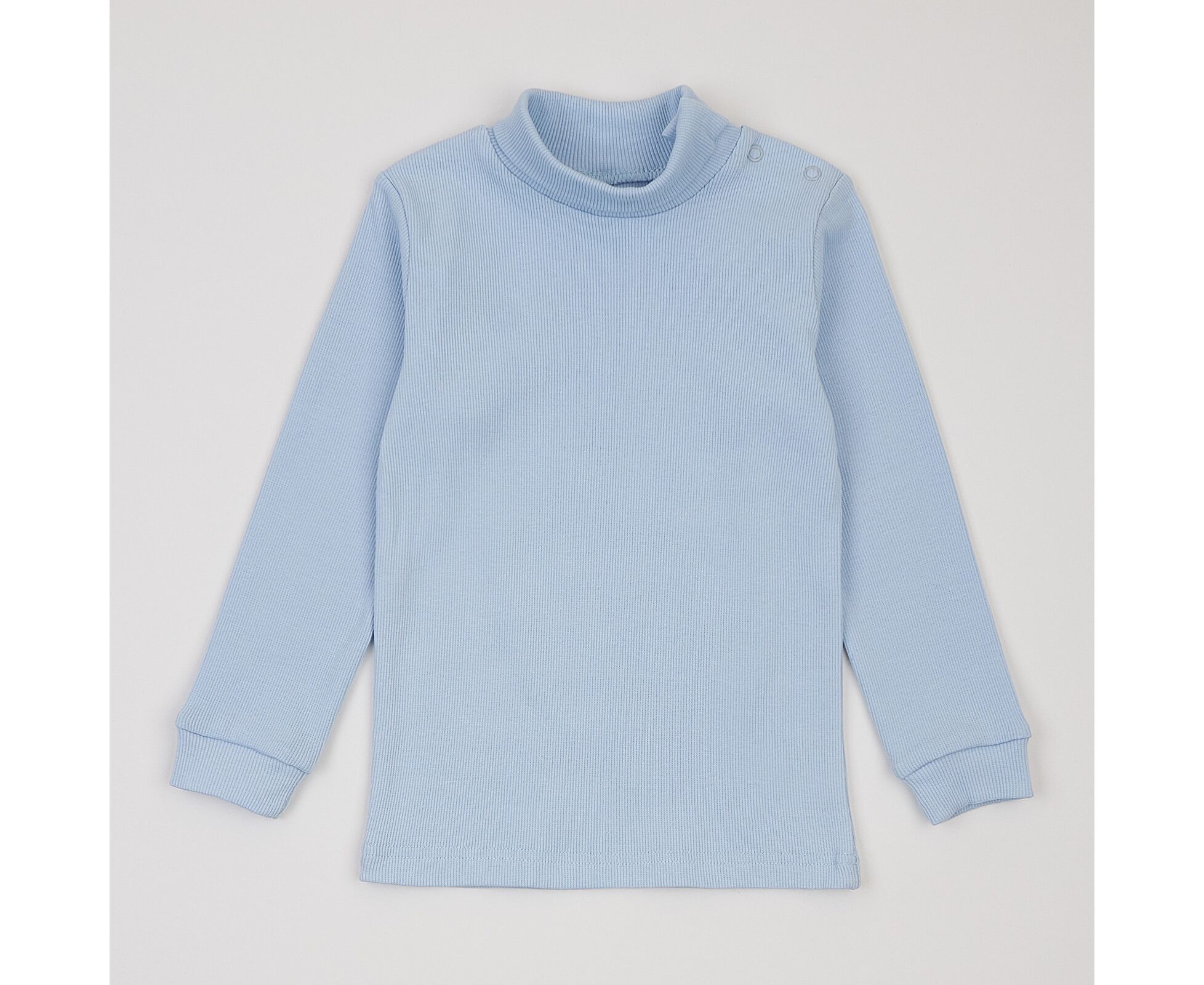 Водолазка дитяча, виготовлена з еластичного, приємного на дотик полотна преміум якості - рубчику з фактурною поверхнею. Висока горловина дозволяє регулювати ширину відвороту як зручніше буде дитині. До 104-го розміру по горловині плечова застібка на кнопки для полегшення надягання, щоб малюк не вередував при продіванні голови. По низу рукавів манжети, що забезпечує щільне прилягання виробу. Низ виробу прямий.