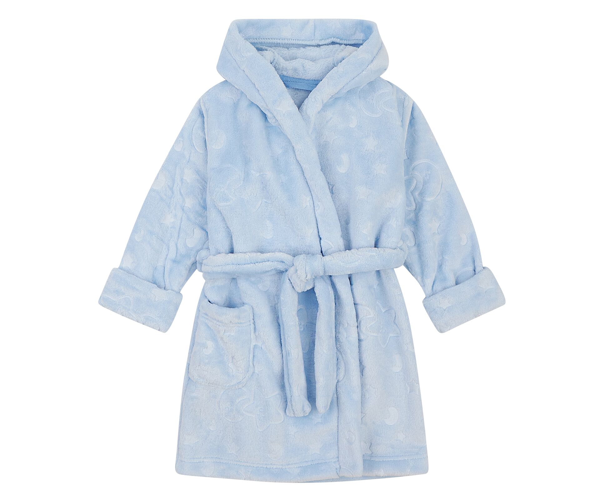 Теплий дитячий халат з каптуром з прикольними декоративними вушками, з м'якого приємного на дотик вельсофту. Шов горловини закритий бавовняною тасьмою, на пілочці накладна кишеня. Пояс продітий через шльовки. Рукава з широкими відворотами.