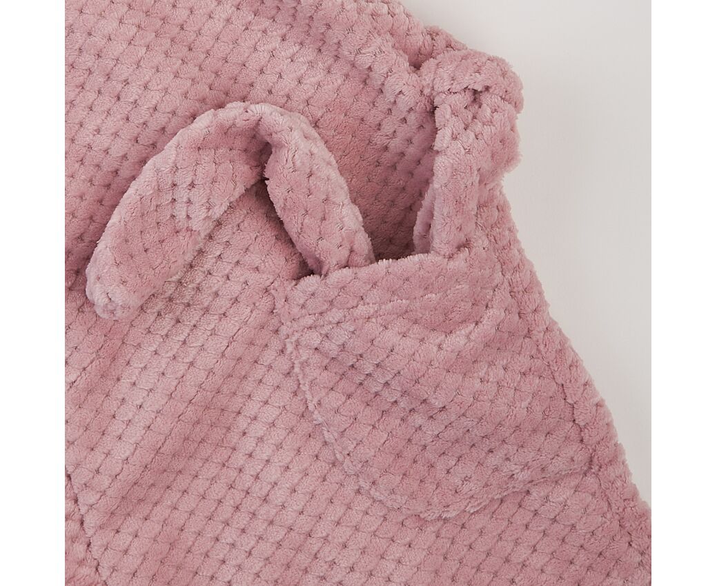 Затишний теплий дитячий халат з каптуром з прикольними декоративними вушками. Виготовлений з м'якої, дуже приємної на дотик полірованої махри велсофт, яка не кашлатиться і не втрачає вигляд після прання.