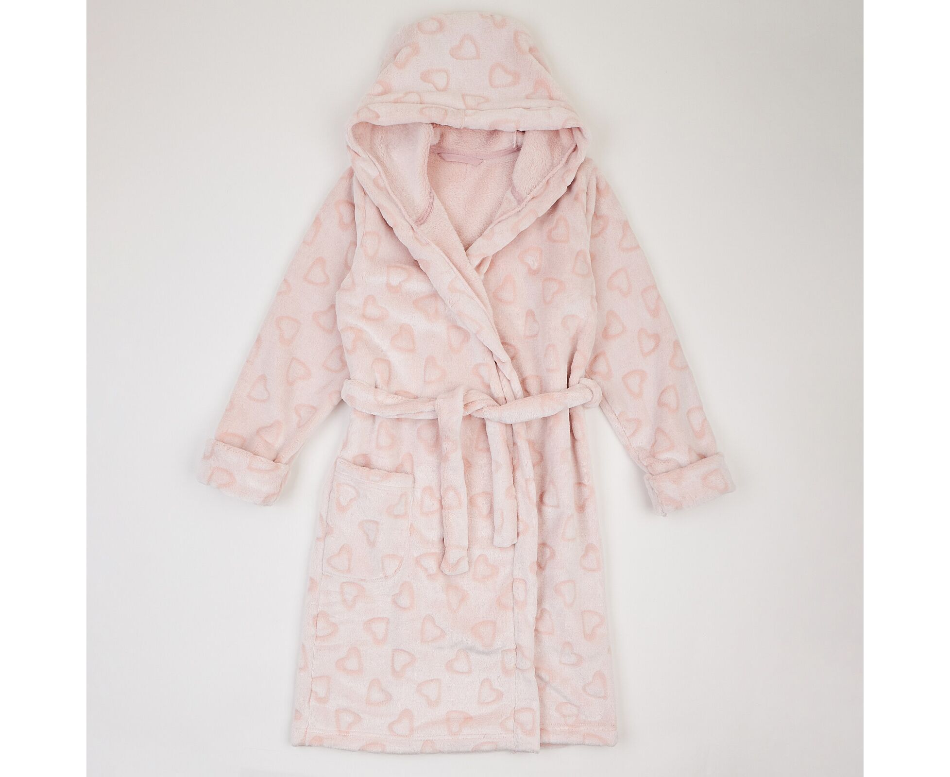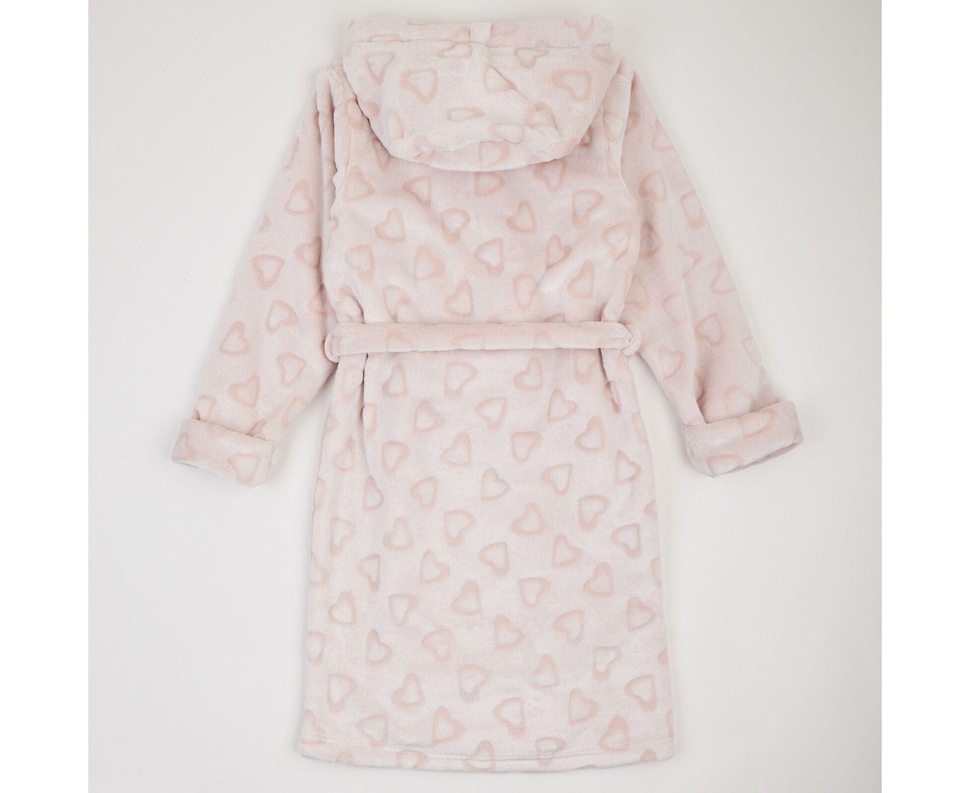 Теплий дитячий халат з каптуром та кишенею на пілочці, з м'якого приємного на дотик вельсофту. Шов горловини закритий бавовняною тасьмою. Пояс продітий через шльовки. Рукава з широкими відворотами.