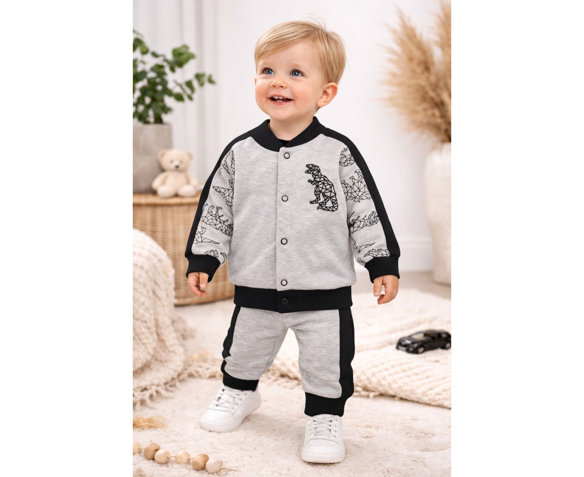 динозаври на сірому+чорний 86 (1-1,5 роки) для хлопчика сірий інтерлок Малыши/Кофты 86 81928197