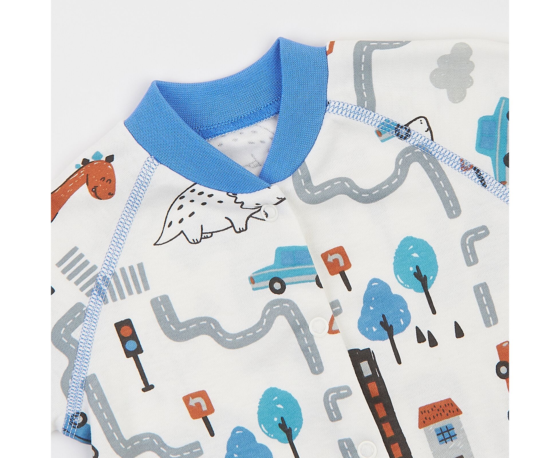 Чоловічок для новонароджених, з м'якенького, приємного на дотик бавовняного інтерлока преміум якості. Комбінезон з центральною застібкою на кнопки по борту та по ніжкам. Рукав реглан, стійка та манжети з еластичної рібани.