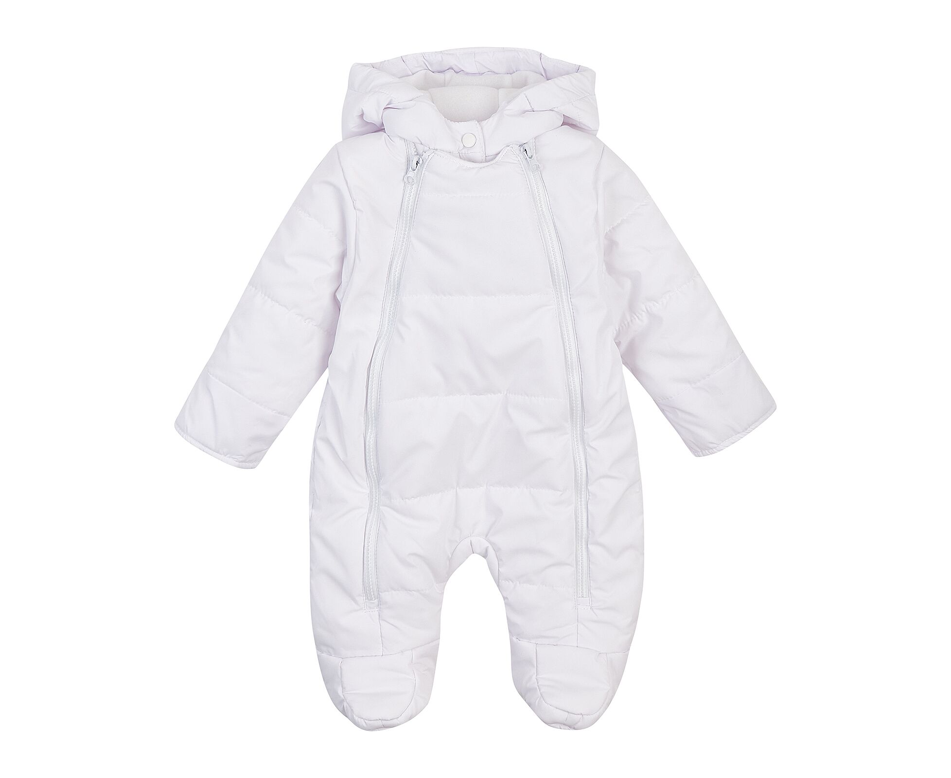 Стильний теплий дитячий комбінезон з каптуром та закритими ніжками. Виготовлений з якісної матової плащовки з особливим просоченням, яке забезпечує водовідштовхувальні та вітрозахисні властивості. Простьобаний з утеплювачем синтепух щільністю 200г/кв.м, який добре зберігає тепло, форму та об'єм, навіть після багаторазового стиснення. Підкладка комбінезону з м'якенького, дуже приємного на дотик, щільного флісу. Застібка на дві блискавки по переду з продовженням по ніжці для зручності надягання. Для захищеності від продування під застікою оброблені підборта, що переходять в високу стійку з застібкою на кнопки. Низ рукавів з відворотом на еластичній гумці, що захистить долоньки вашого малюка. По передньому краю каптура еластична тасьма, для щільності прилягання каптура.