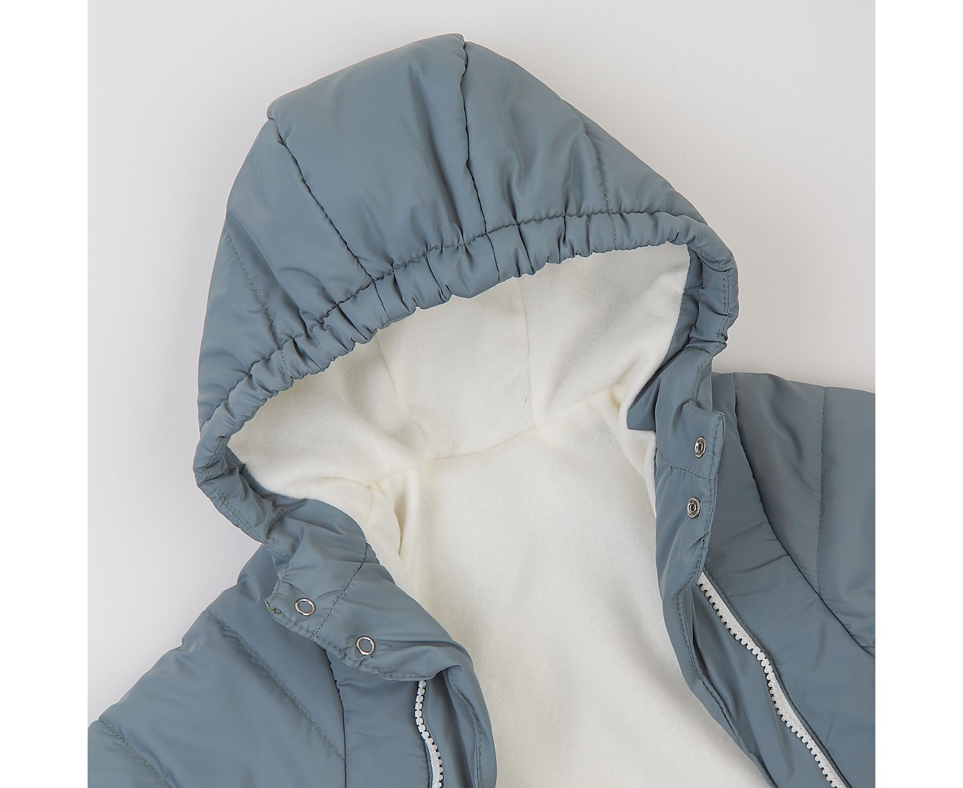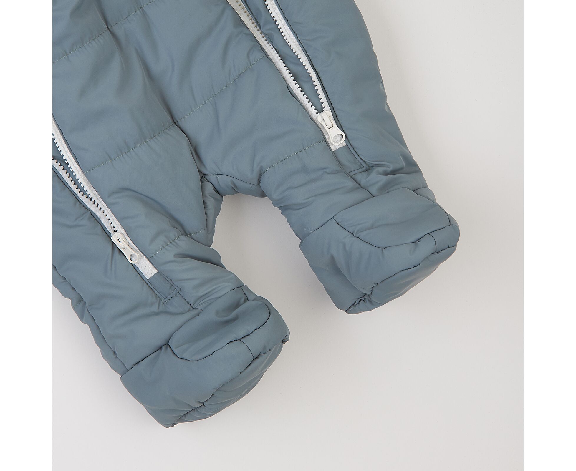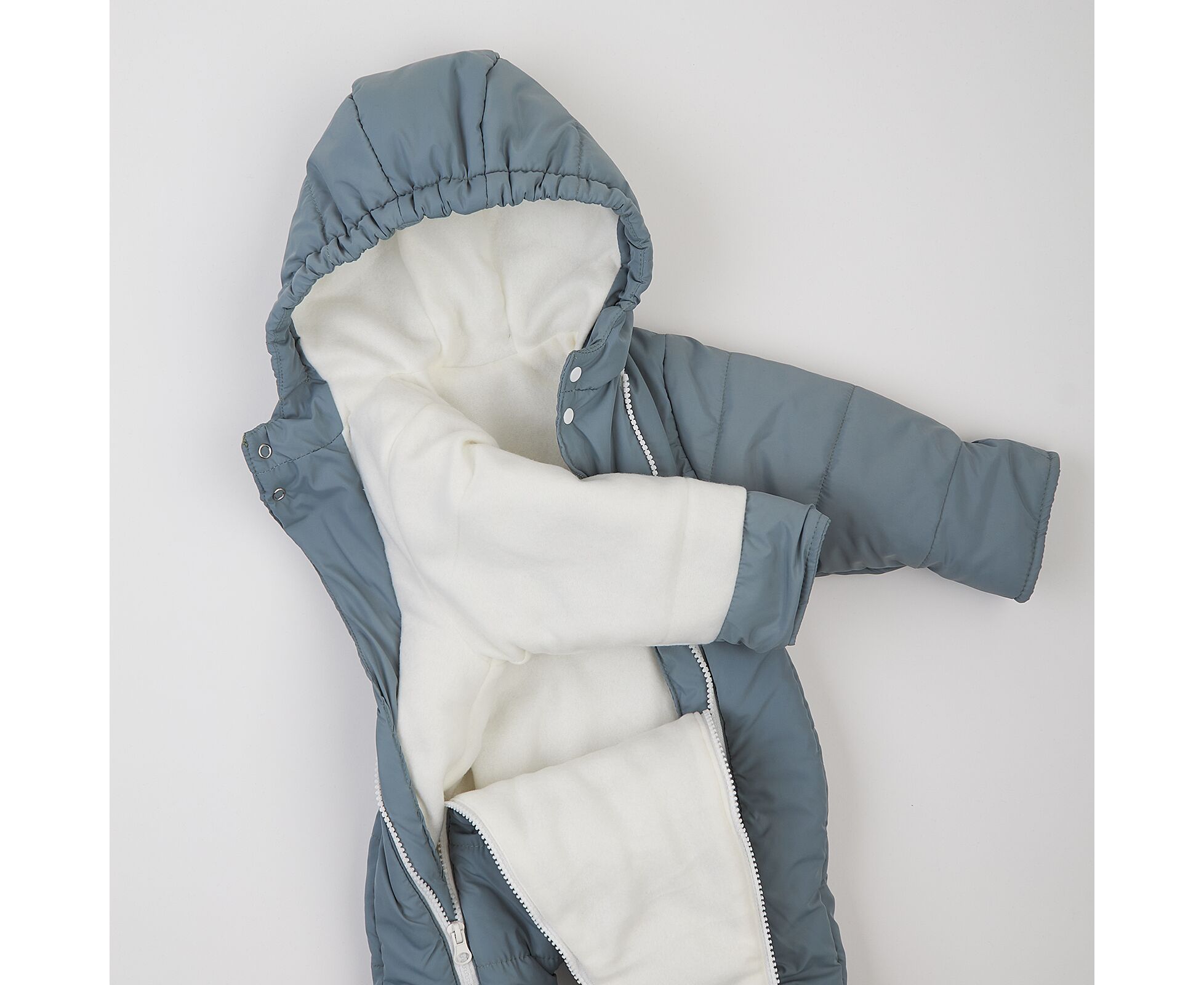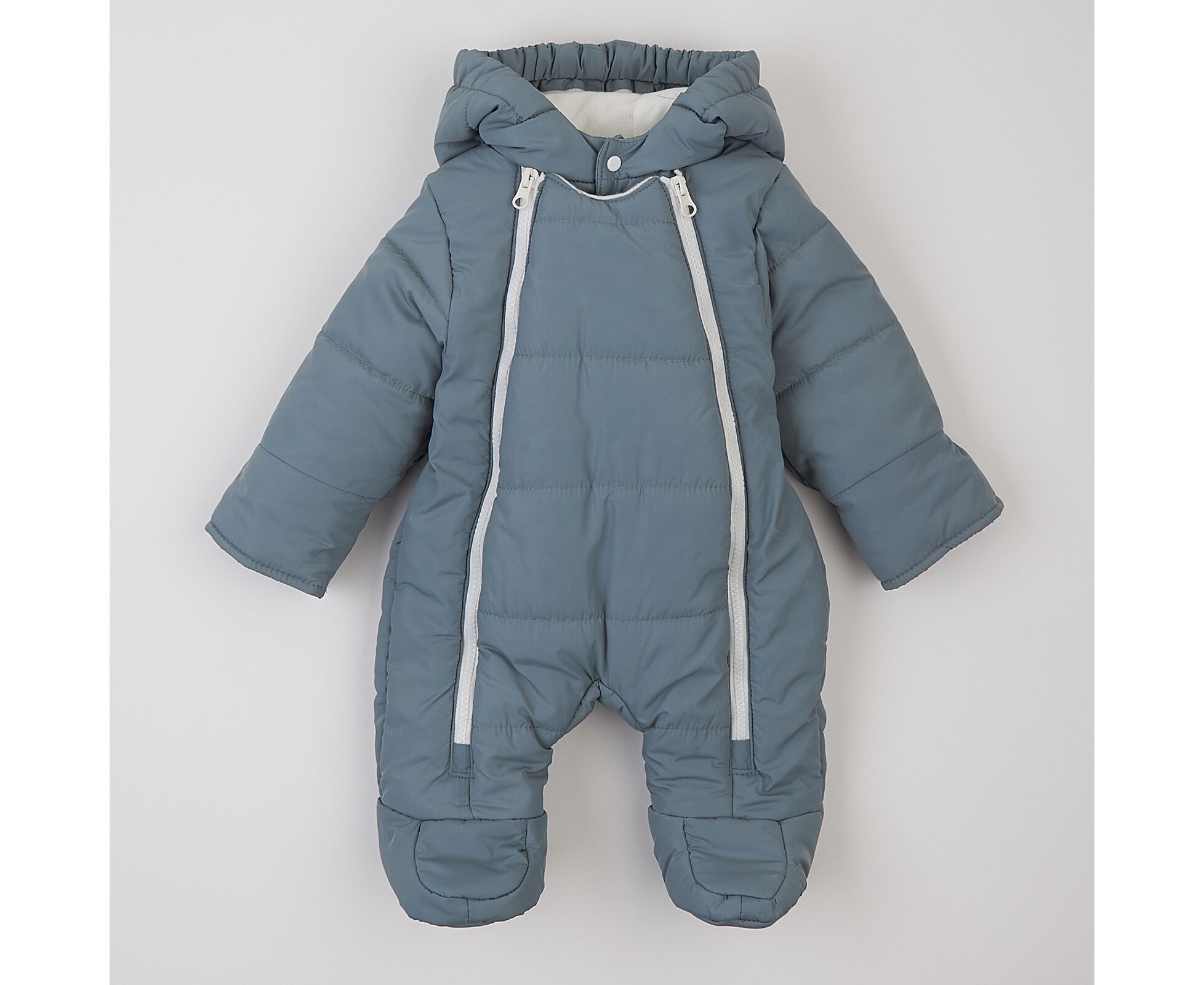 Стильний теплий дитячий комбінезон з каптуром та закритими ніжками. Виготовлений з якісної матової плащовки з особливим просоченням, яке забезпечує водовідштовхувальні та вітрозахисні властивості. Простьобаний з утеплювачем синтепух щільністю 200г/кв.м, який добре зберігає тепло, форму та об'єм, навіть після багаторазового стиснення. Підкладка комбінезону з м'якенького, дуже приємного на дотик, щільного флісу. Застібка на дві блискавки по переду з продовженням по ніжці для зручності надягання. Для захищеності від продування під застікою оброблені підборта, що переходять в високу стійку з застібкою на кнопки. Низ рукавів з відворотом на еластичній гумці, що захистить долоньки вашого малюка. По передньому краю каптура еластична тасьма, для щільності прилягання каптура.