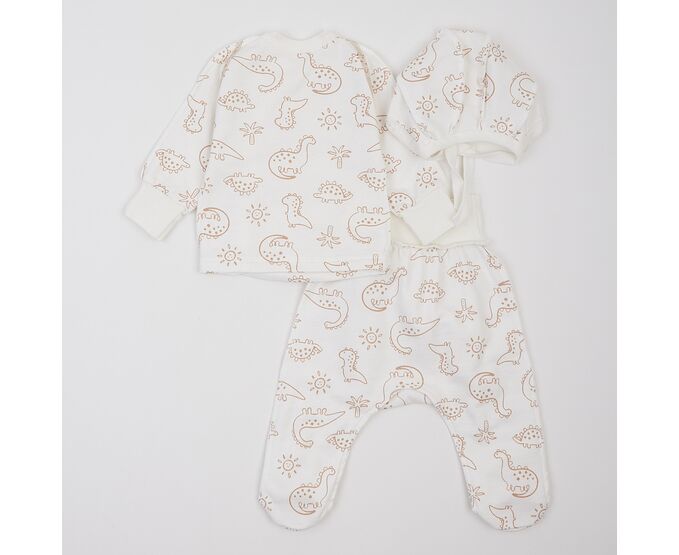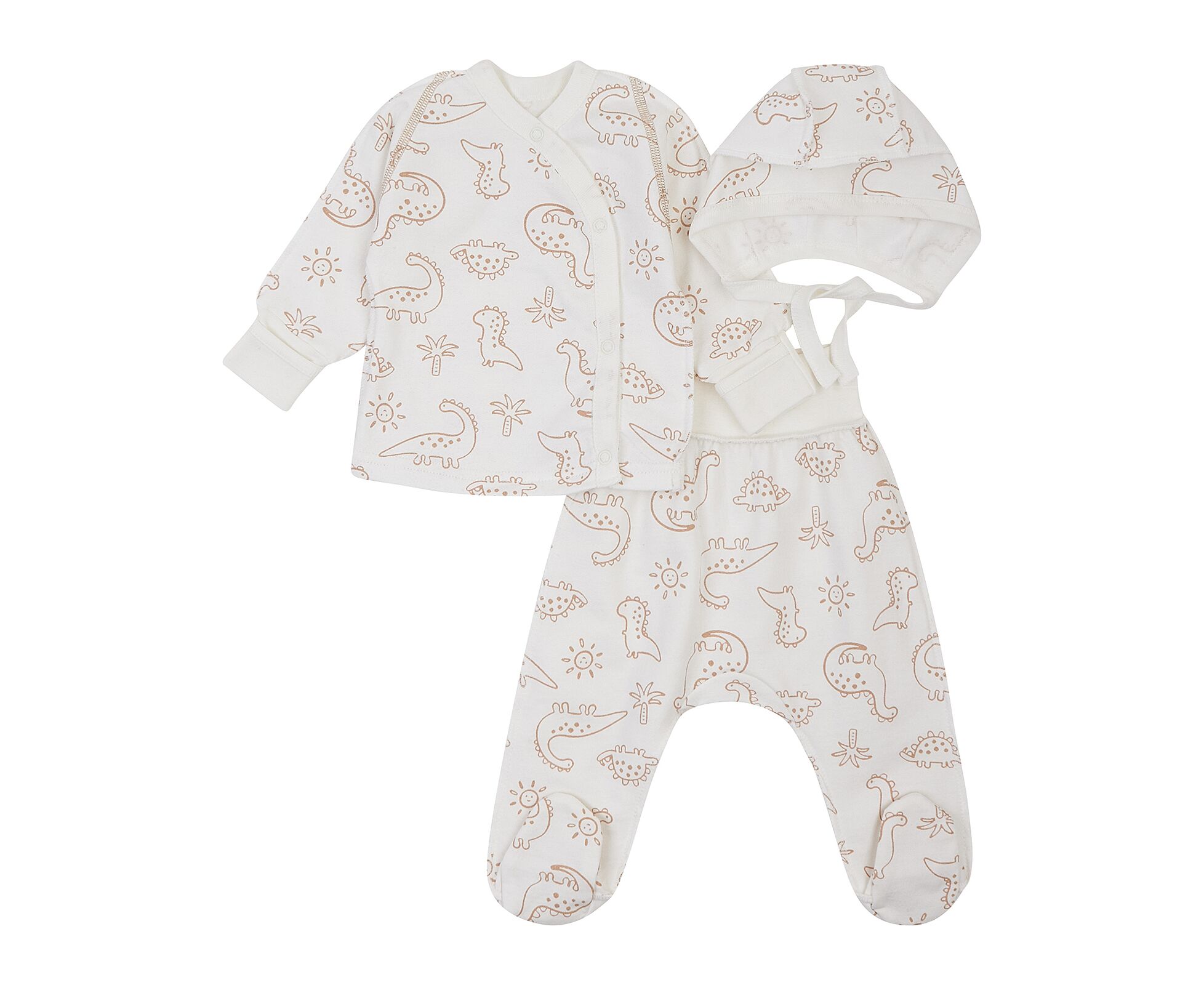 Тепленький комплект для новонароджених з м'якого, приємного на дотик футеру з начосом. Складається з льолі, повзунків та чепчику. Льоля з асиметричною застібкою на кнопки на запах. Рукав реглан, манжети льолі з еластичної рібани та з відворотом, що дозволяє перетворити їх в царапки. Повзунки з ластовицею, без середніх швів, з поясом з еластичної рібани. Чепчик із зав'язками під підборіддям. Модель чепчику з чотирьох деталей, що забезпечує щільність прилягання виробу. Натуральний склад полотна та шви назовні в усіх виробах комплекту, які не торкаються шкіри малюка, виключають будь-який дискомфорт та подразнення.