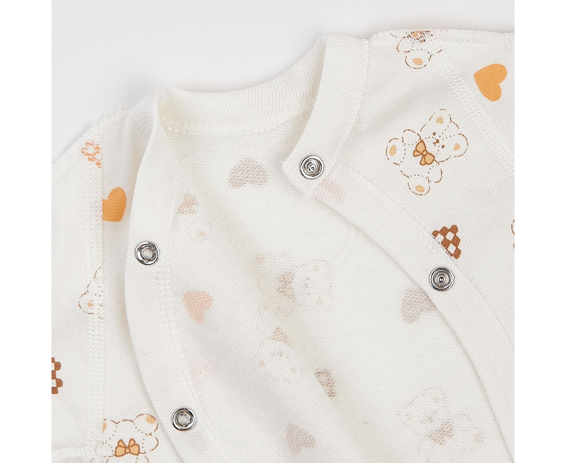 Тепленький комплект для новонароджених з м'якого, приємного на дотик футеру з начосом. Складається з льолі, повзунків та чепчику. Льоля з асиметричною застібкою на кнопки на запах. Рукав реглан, манжети льолі з еластичної рібани та з відворотом, що дозволяє перетворити їх в царапки. Повзунки з ластовицею, без середніх швів, з поясом з еластичної рібани. Чепчик із зав'язками під підборіддям. Модель чепчику з чотирьох деталей, що забезпечує щільність прилягання виробу. Натуральний склад полотна та шви назовні в усіх виробах комплекту, які не торкаються шкіри малюка, виключають будь-який дискомфорт та подразнення.