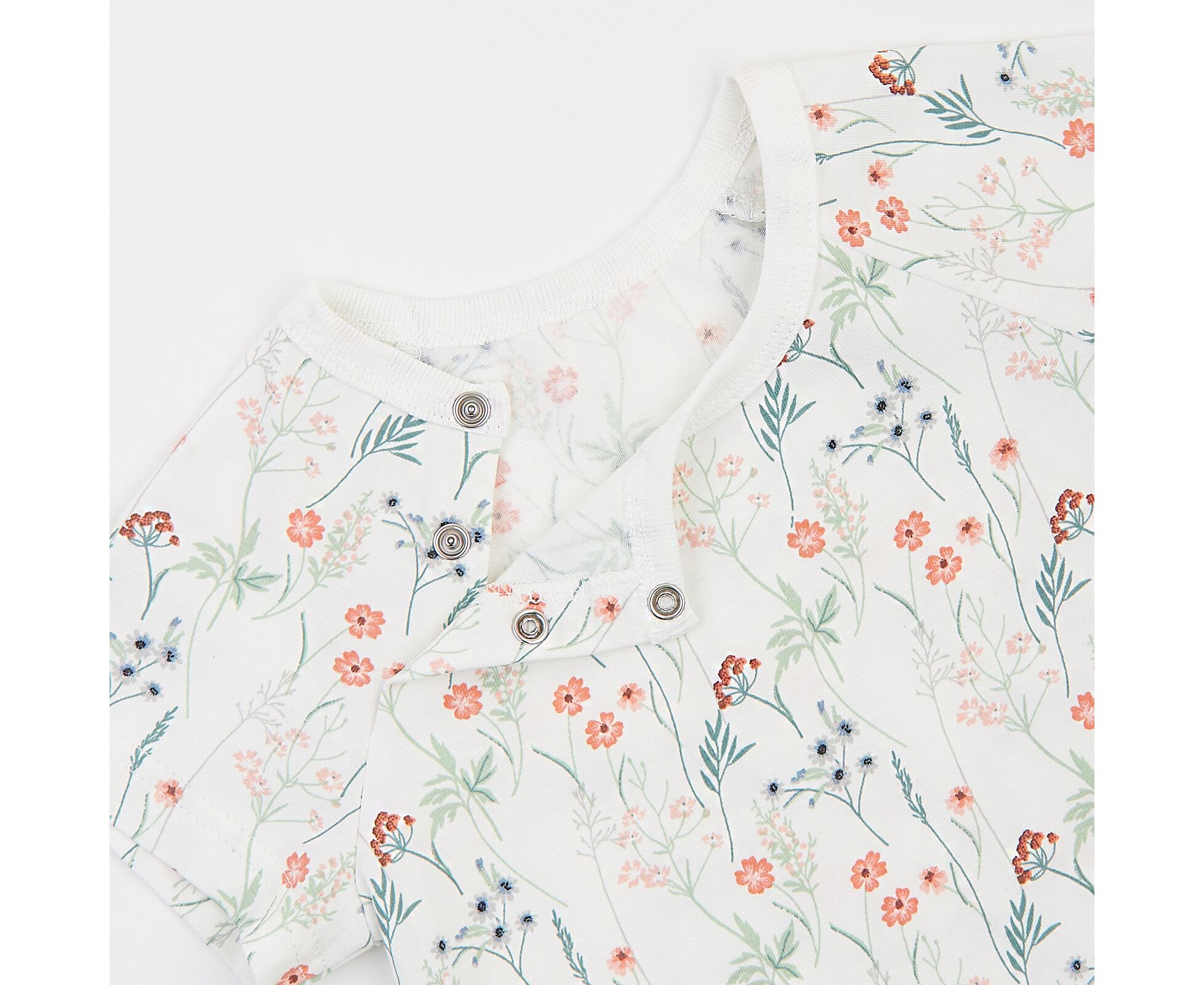 Літній дитячий комплект з футболки та шорт, Футболка виготовлена з білого бавовняного стрейч-куліру преміум-якості, з невеликим вмістом еластану (3%), наявність якого забезпечує тканині невелику еластичність, а значить і зручність надягання виробу, Футболка з круглим вирізом горловини з пришивною планкою, з рукавом реглан та застібкою на кнопки в шві рукава. Шорти оригінального стильного крою з зкошеними боковими швами і накладною кишенею на передніх половинках. Виготовлені з повністю бавовняної лакости, яка добре тримає форму та колір навіть після багаторазового прання.