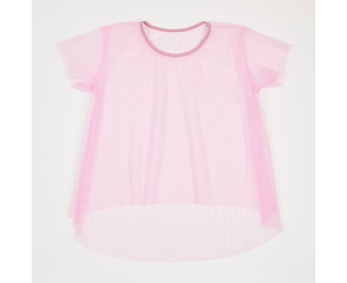 Комплект для дівчинки, з подовженої майки з накидкою та шортів-велосипедок. Майка виготовлена з якісного стрейч-куліру, знімна накидка - з м'якої еластичної напівпрозорої євросітки, велосипедки - з приємного на дотик стрейч-куліру з фактурою рубчику. Майка з стильним принтом на переді, горловина та пройми окантовані руликом. Накидка вільного широкого крою, з необробленими зрізами. Круглий визір горловини окантований руликом. Велосипедки до колін, з цільнокроєним поясом з застроченою гумкою, добре облягають фігуру, не сковують рухи дитини.