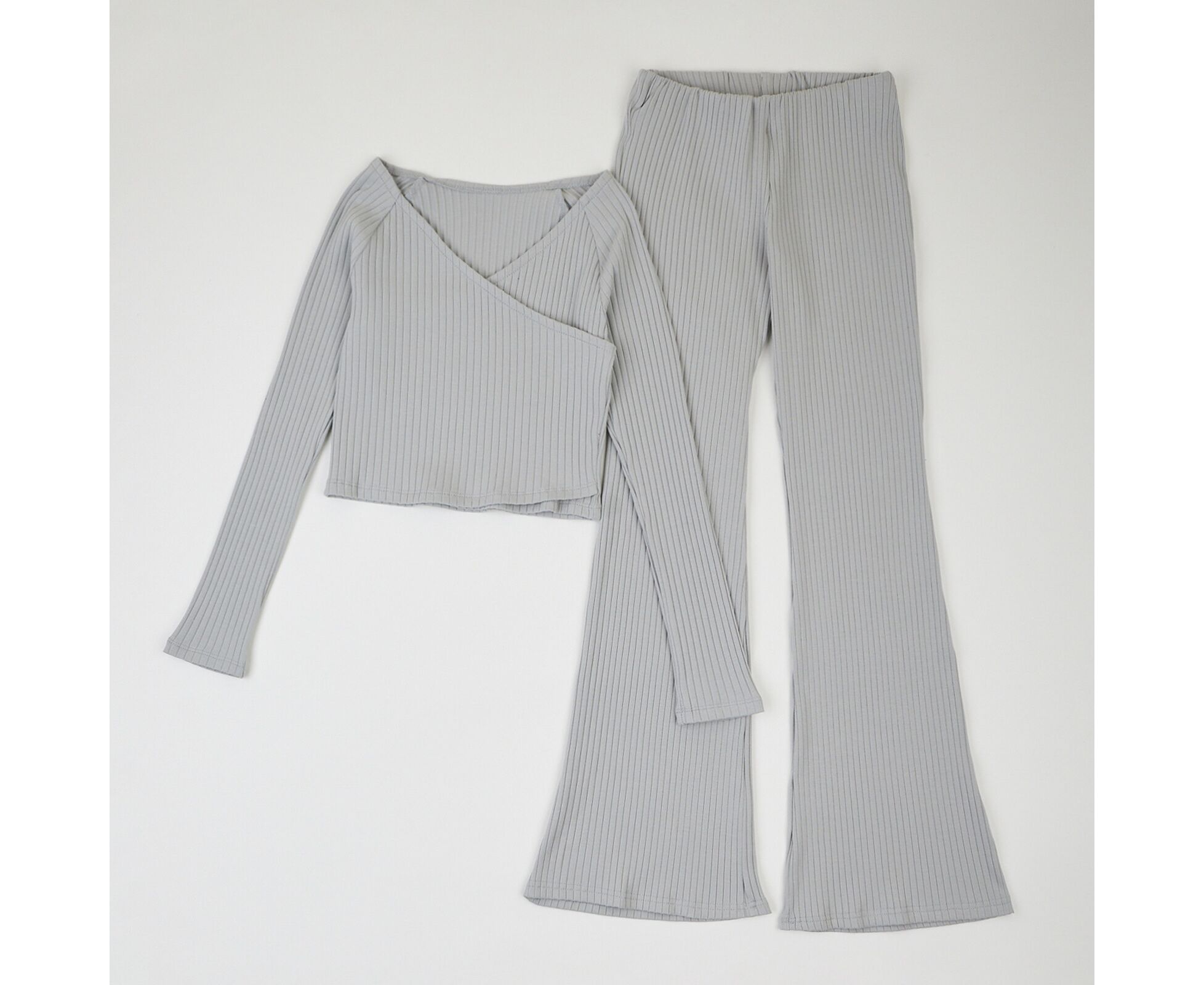 Супер зручний та комфортний комплект для дівчинки, з яким ви зможете із легкістю зібрати капсулу з образів та міксувати речі. Включає штани-кльош із високою талією та топ із довгим рукавом, що надають вашому образу енергії та стилю. Комплект виготовлений з якісного, м'якого, приємного на дотик еластичного стрейч-куліру з фактурою рубчик, який добре тримає форму та колір навіть після багаторазового прання. Топ з запахом на переді, горловина переду зафіксована проложеною по зрізу гумкою, що забезпечує гарне прилягання до тіла. Висока посадка та фасон кльош штанів створють ефектну лінію, що візуально подовжує ноги. Оригінальна обробка поясу штанів з еластичною гумкою всередині також підкреслює стильність виробу.