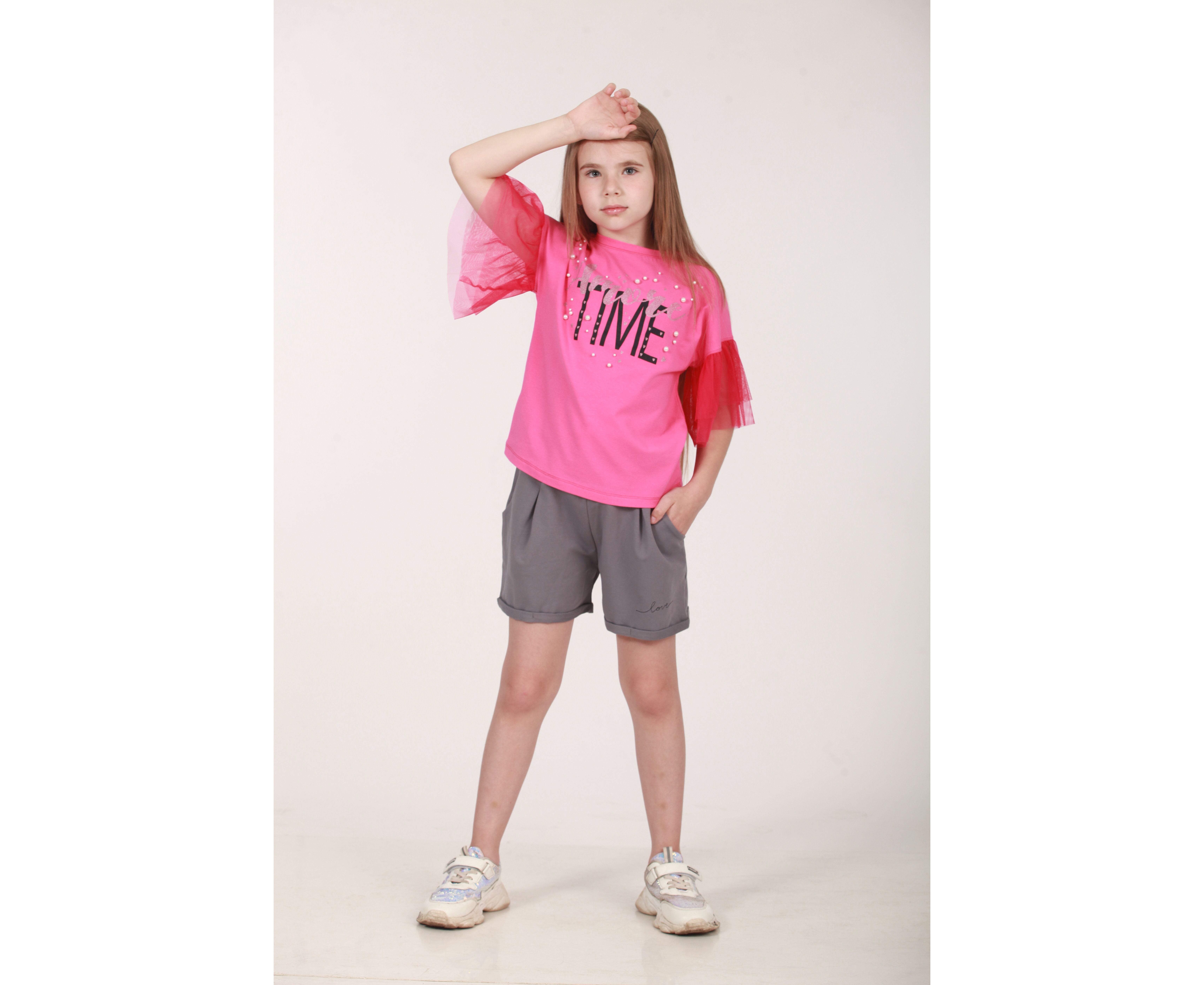 малина+сірий 122 (6-7 років) для дівчинки малиновий (фуксія) стрейч-кулір/стрейч-сітка Летние комплекты 122 234249265
