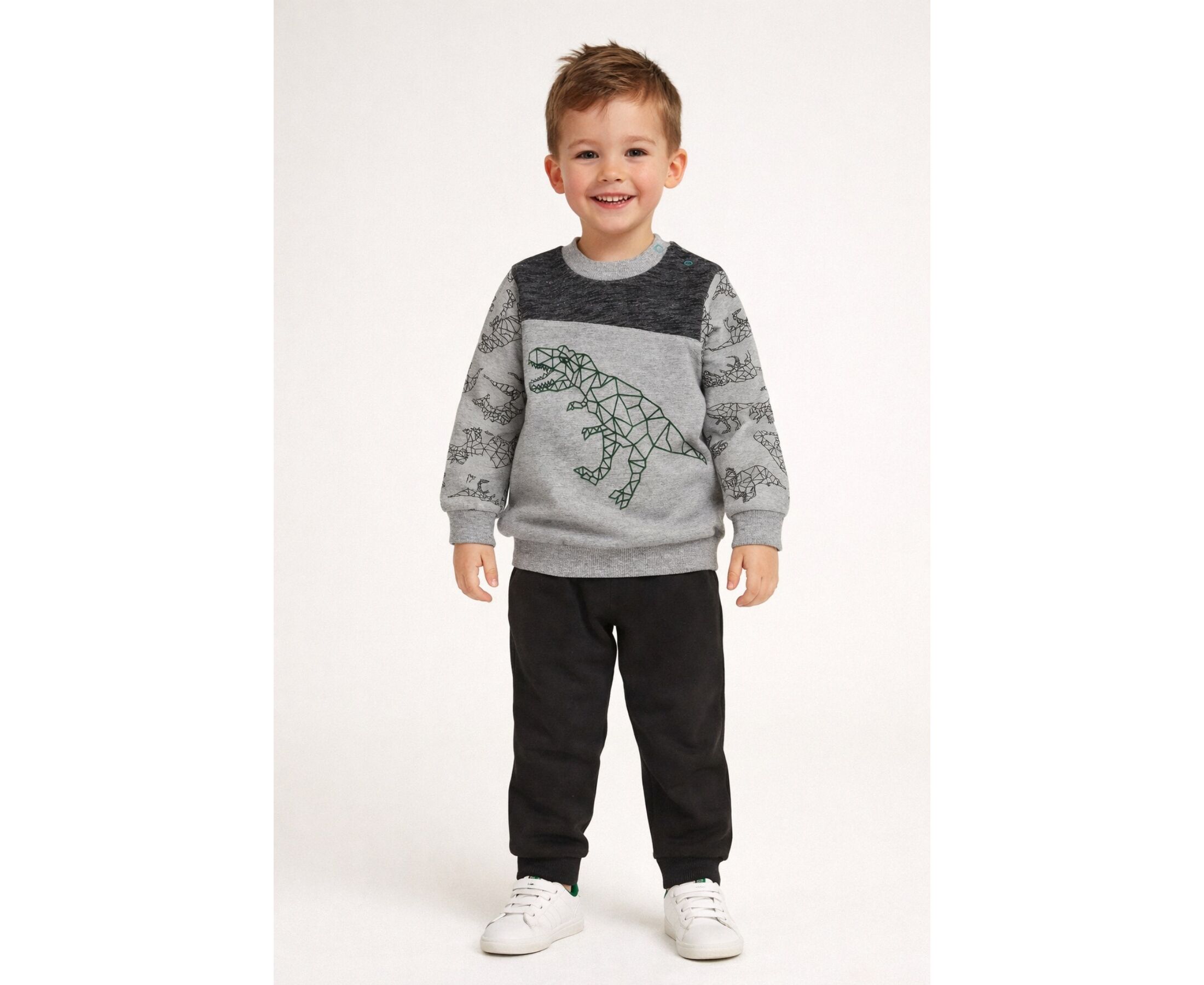 динозаври на сірому+чорний 80 (9-12 міс.) для хлопчика сірий двонитка Спортивная одежда/Спортивные костюмы 80 503610159