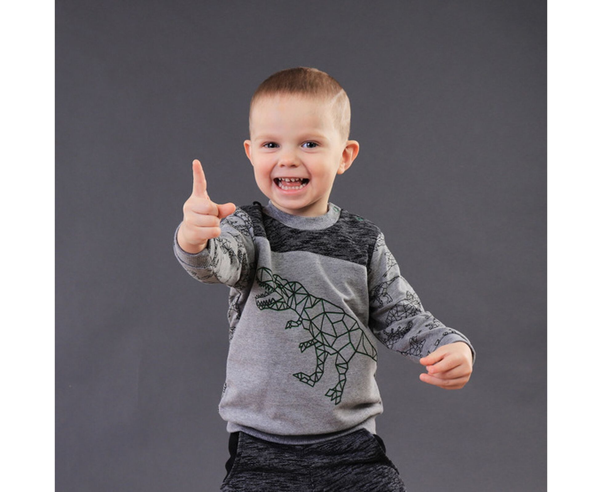 динозаври на сірому+чорний 86 (1-1,5 роки) для хлопчика сірий двонитка Спортивная одежда/Спортивные костюмы 86 503610179