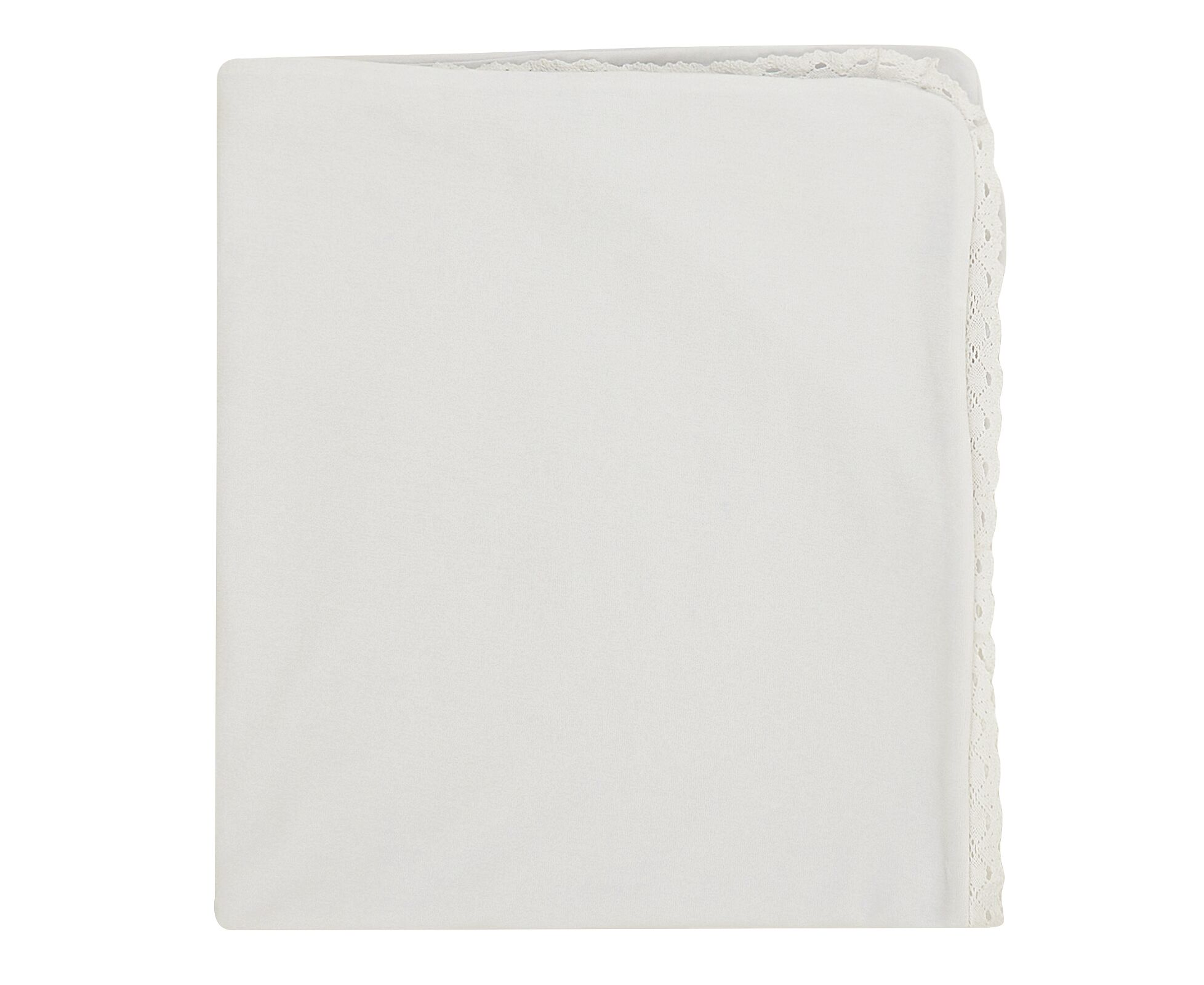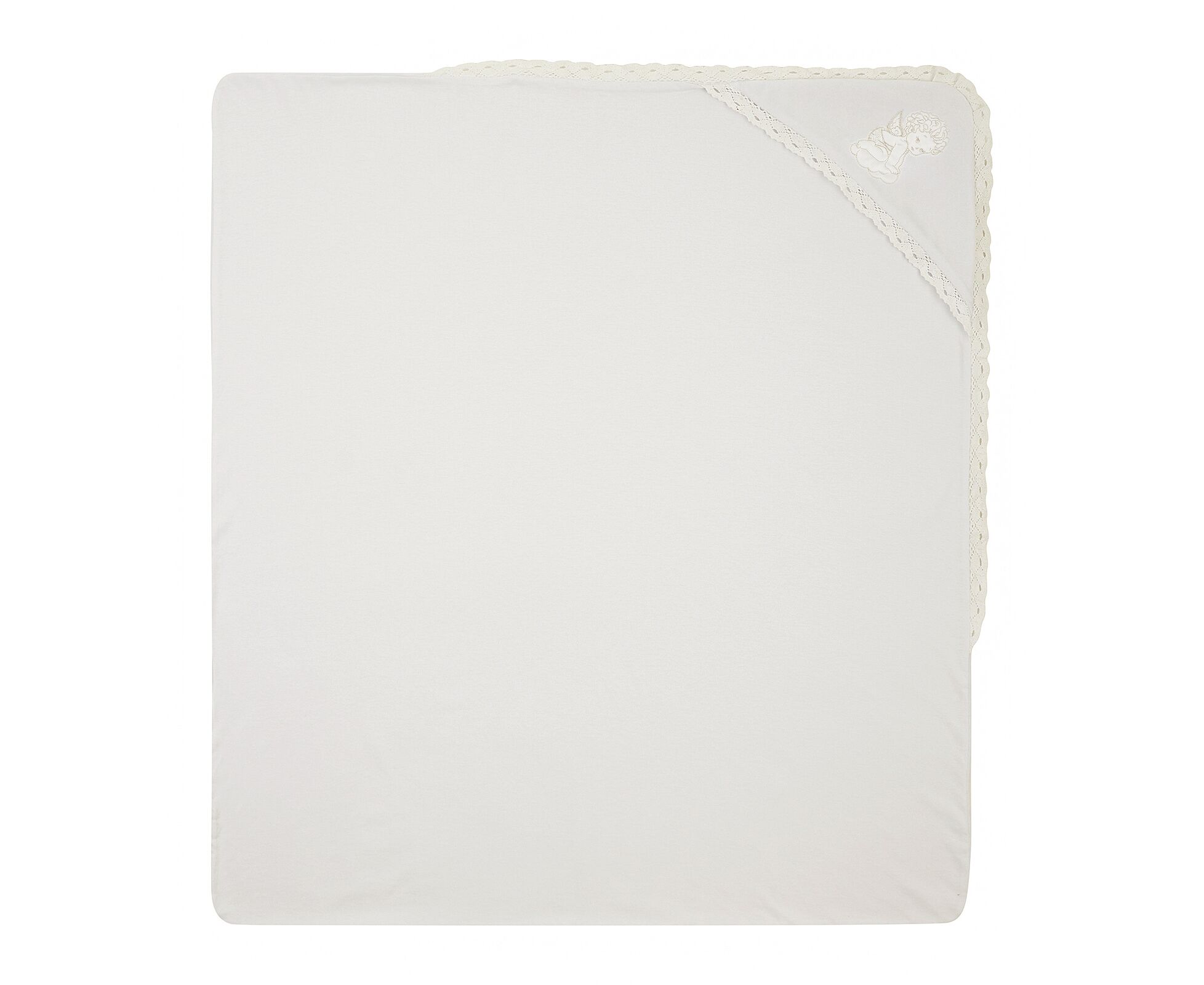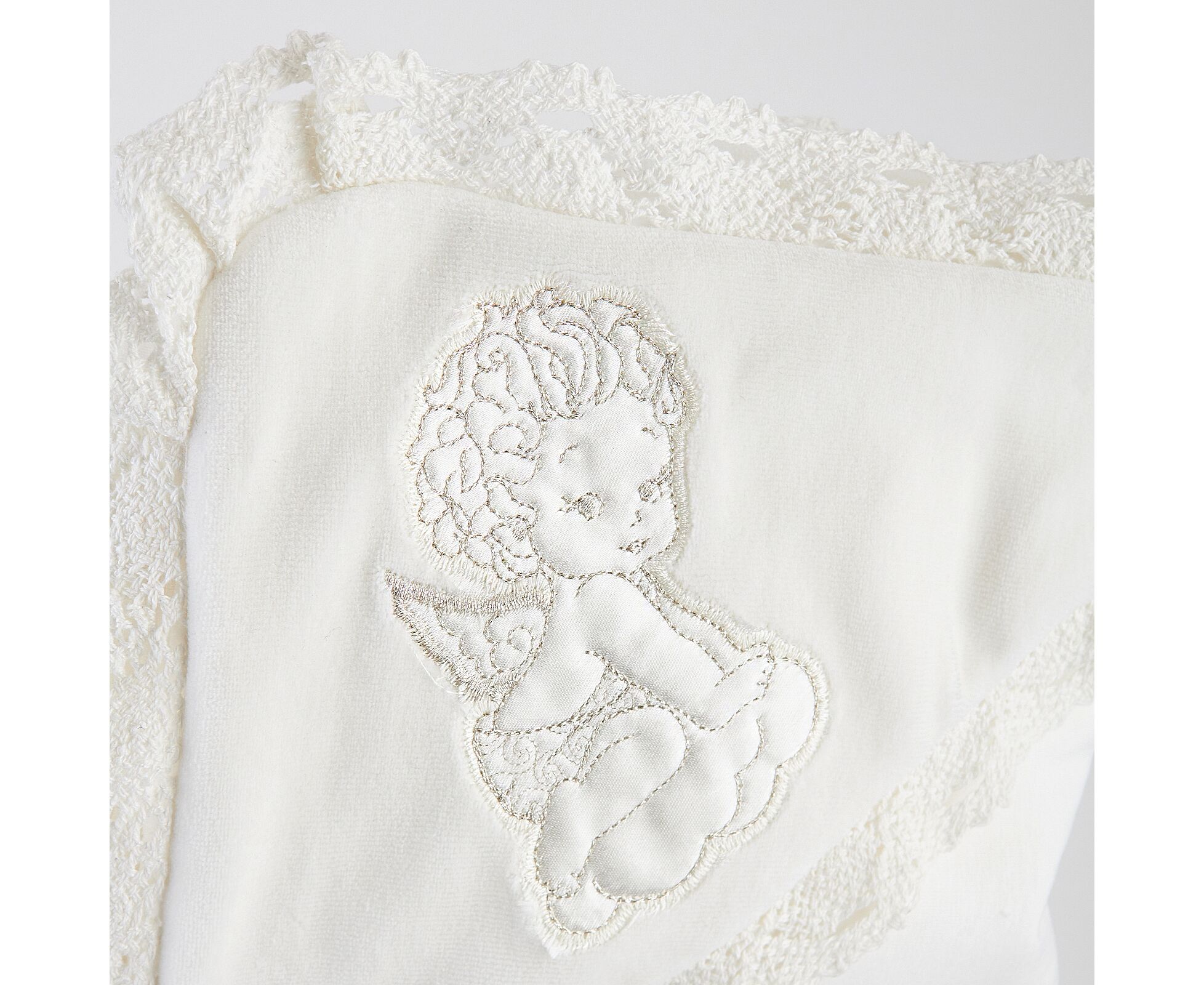 Крижма для хрещення новонароджених. Виготовлена з м'якенького, дуже приємного на дотик велюру преміум якості, повністю на трикотажній бавовняній підкладці, з куточком, прикрашеним блискучою вишивкою та широким лляним мереживом по всьому периметру виробу. Крижма утеплена снтепухом щільністю 100г/кв.м.