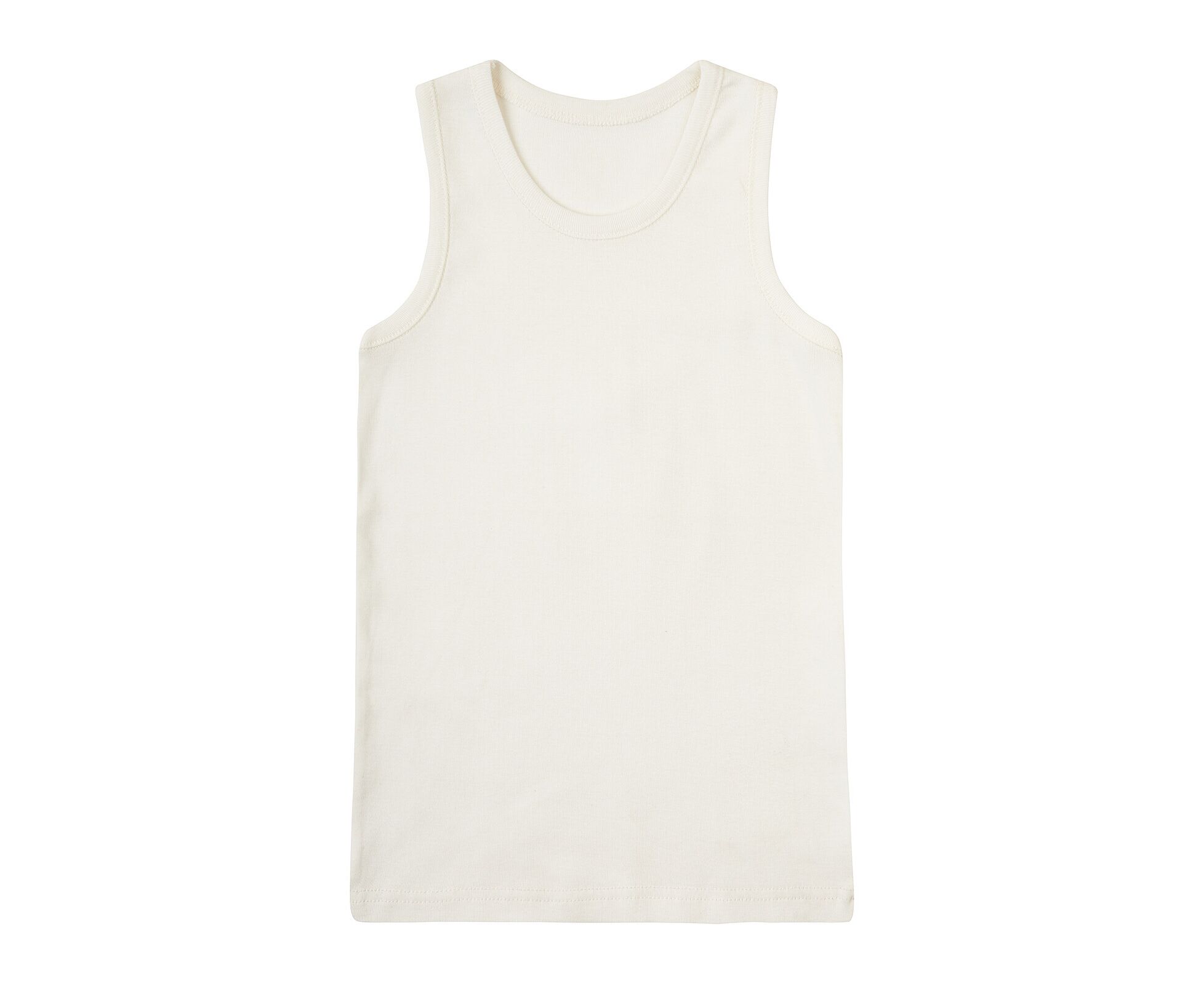 Майка дитяча, з бавовняної рібани без еластану. Пройми та горловина оброблені окантовкою.