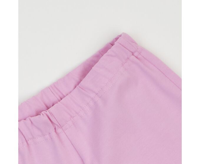 Дитячий комплект домашнього одягу з м'якого, дуже приємного на дотик, інтерлока, що добре тримає форму навіть після багаторазового прання. Реглан вільного силуету, з спущеним плечем, з круглим вирізом горловини, з застібкою на кнопки по плечу. Штани з цільнокроєним поясом на резинці, довжину резинки можна регулювати. По низу рукавів та низу реглана - манжети з еластичної рібани, низки штанів на еластичній тасьмі.