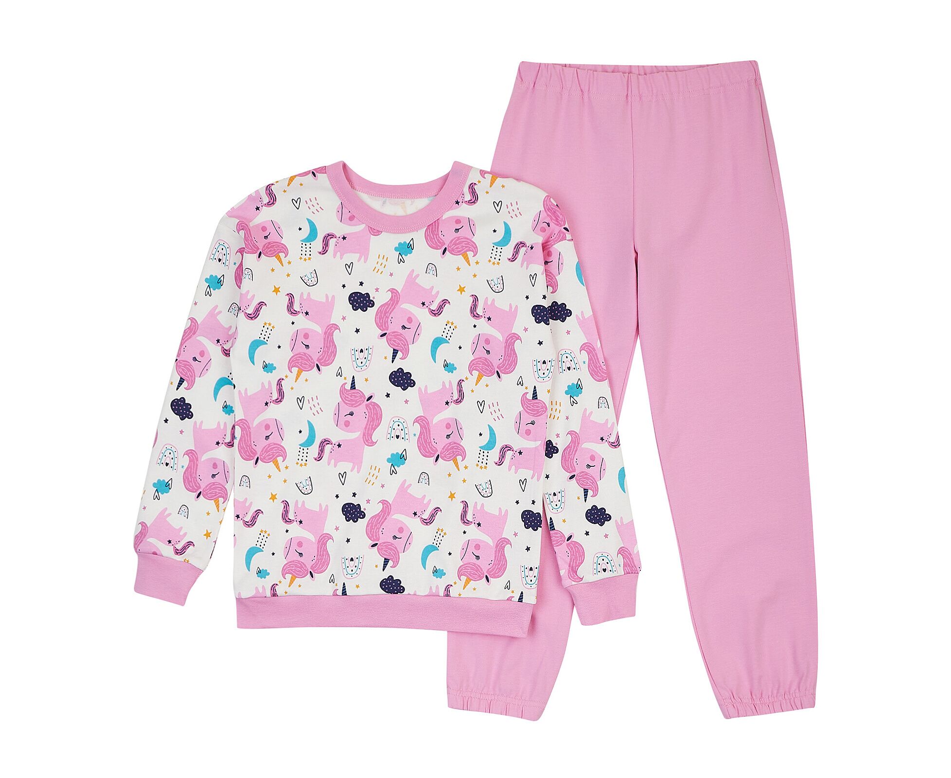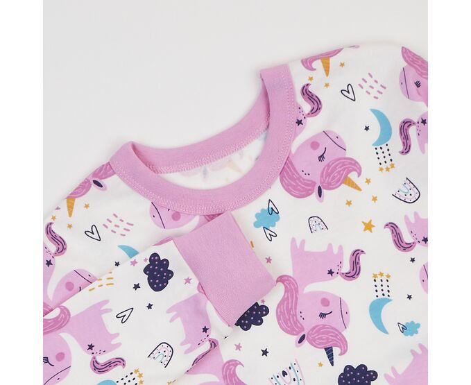 єдинороги рожеві на молочному+рожевий 122 (6-7 років) для дівчинки рожевий інтерлок Пижамы/Пижамы 122