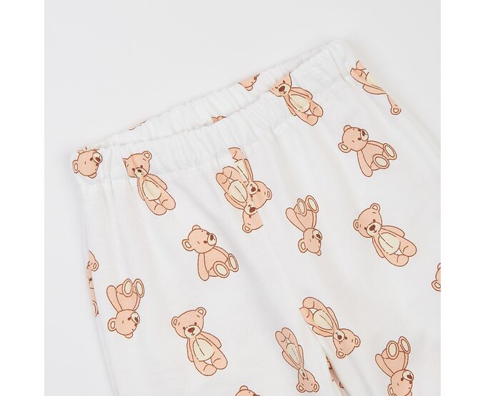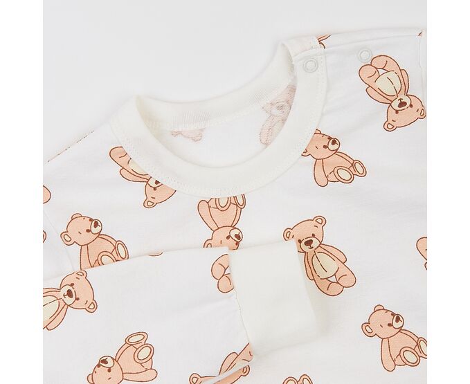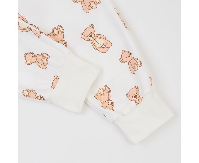 Теплий дитячий комплект домашнього одягу з м'якого, дуже приємного на дотик футеру з начосом, що добре тримає форму навіть після багаторазового прання та не скачується. Реглан з круглим вирізом горловини, застібкою на плечі на кнопки. Штани з цільнокроєним поясом на резинці, довжину резинки можна регулювати. По низу штанів, низу рукавів та низу реглана - манжети з еластичної рібани.