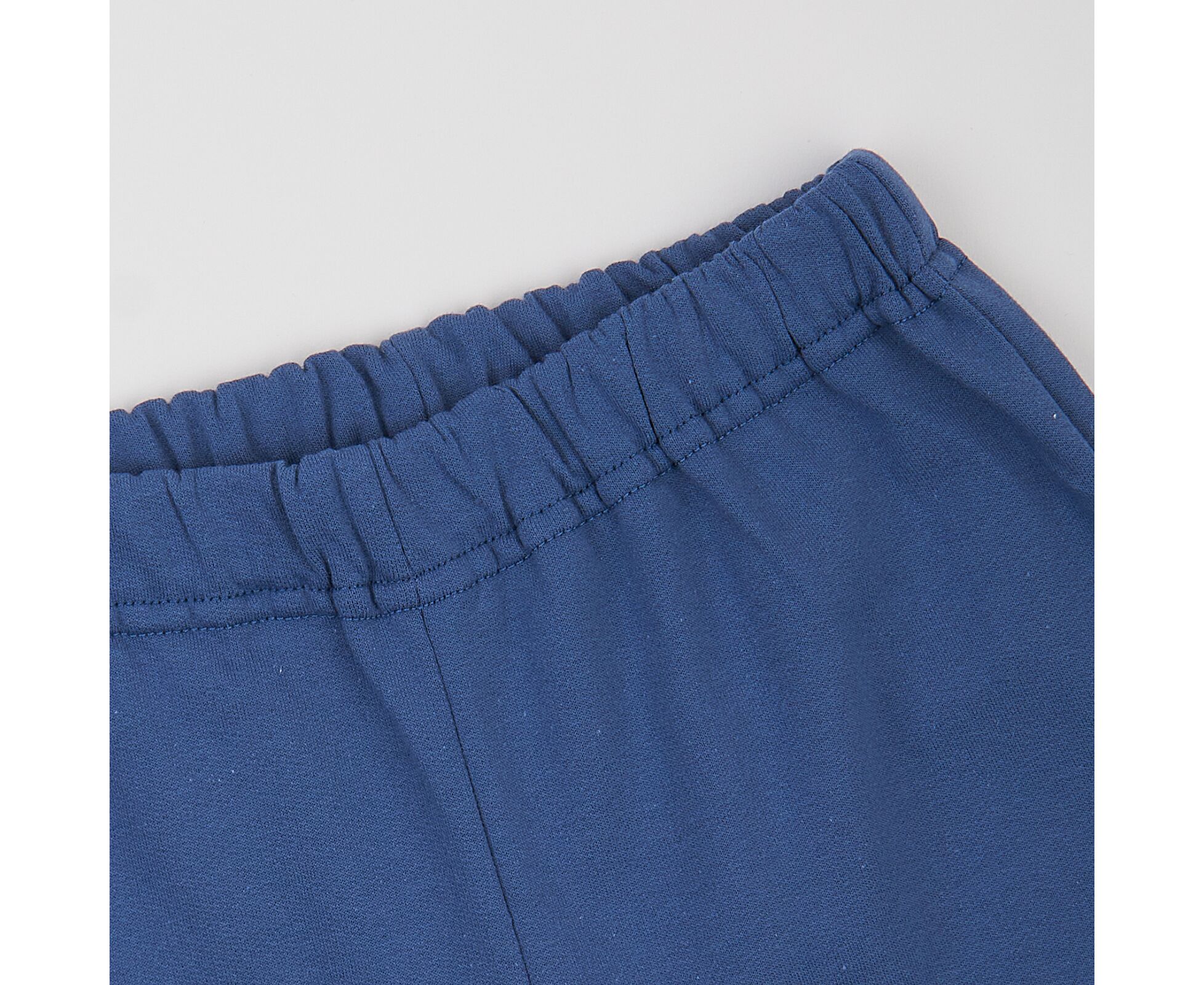Теплий дитячий комплект домашнього одягу (піжама), з м'якого, дуже приємного на дотик футеру з начосом, що добре тримає форму навіть після багаторазового прання та не скачується. Реглан з еластичною планкою по V-подібному вирізу горловини, по низу з притачним поясом з еластичного полотна, без застібки. Штани з цільнокроєним поясом на резинці, довжину резинки можна регулювати. По низу штанів, та по низу рукавів реглана - манжети з еластичної рібани.