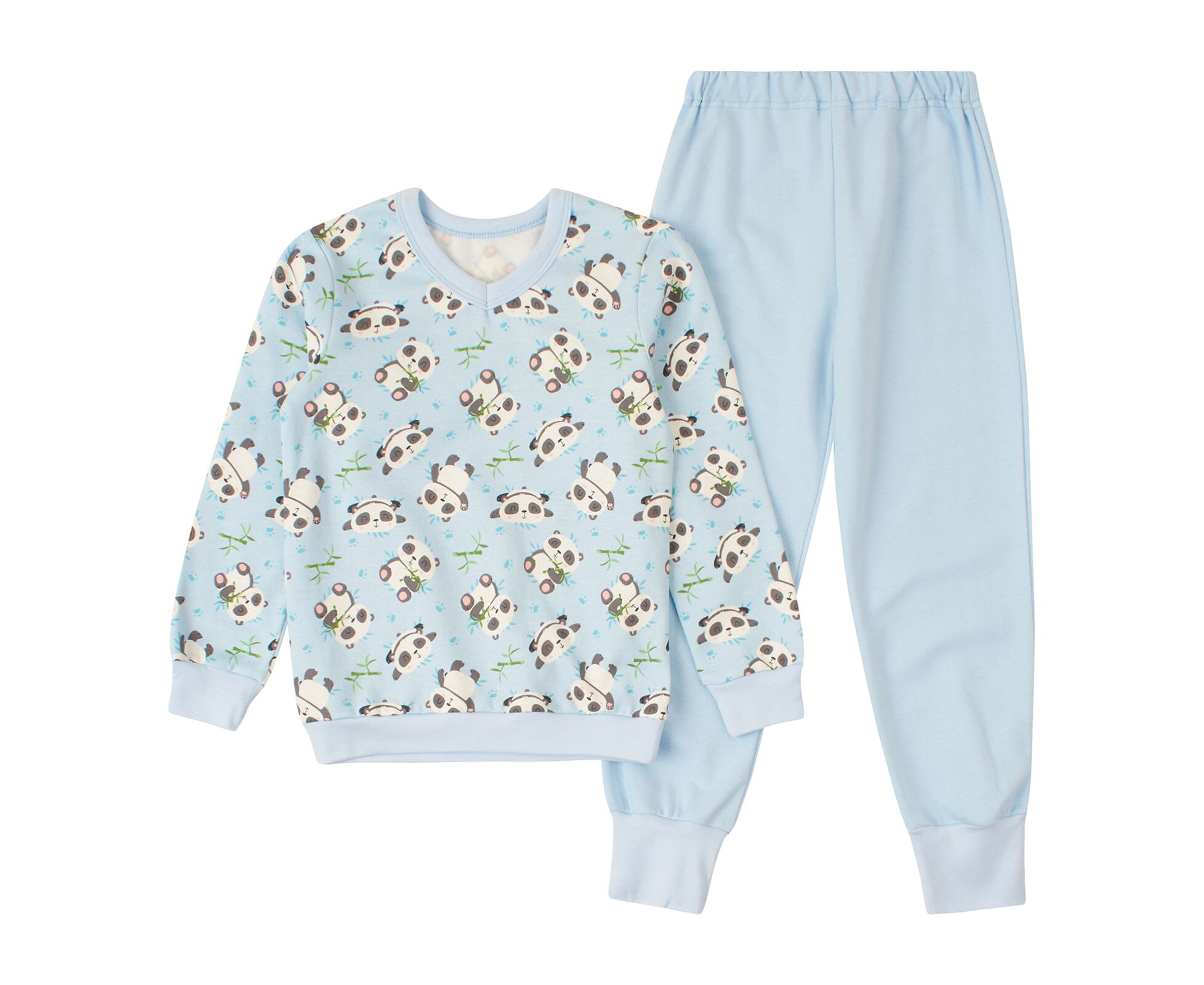Теплий дитячий комплект домашнього одягу з з м'якого, дуже приємного на дотик бавовняного футеру з начосом, що добре тримає форму навіть після багаторазового прання та не скачується. Реглан з V-подібним вирізом горловини, без застібки. Штани з цільнокроєним поясом на резинці, довжину резинки можна регулювати. По низу штанів, низу рукавів та низу реглана - манжети з еластичної рібани.
