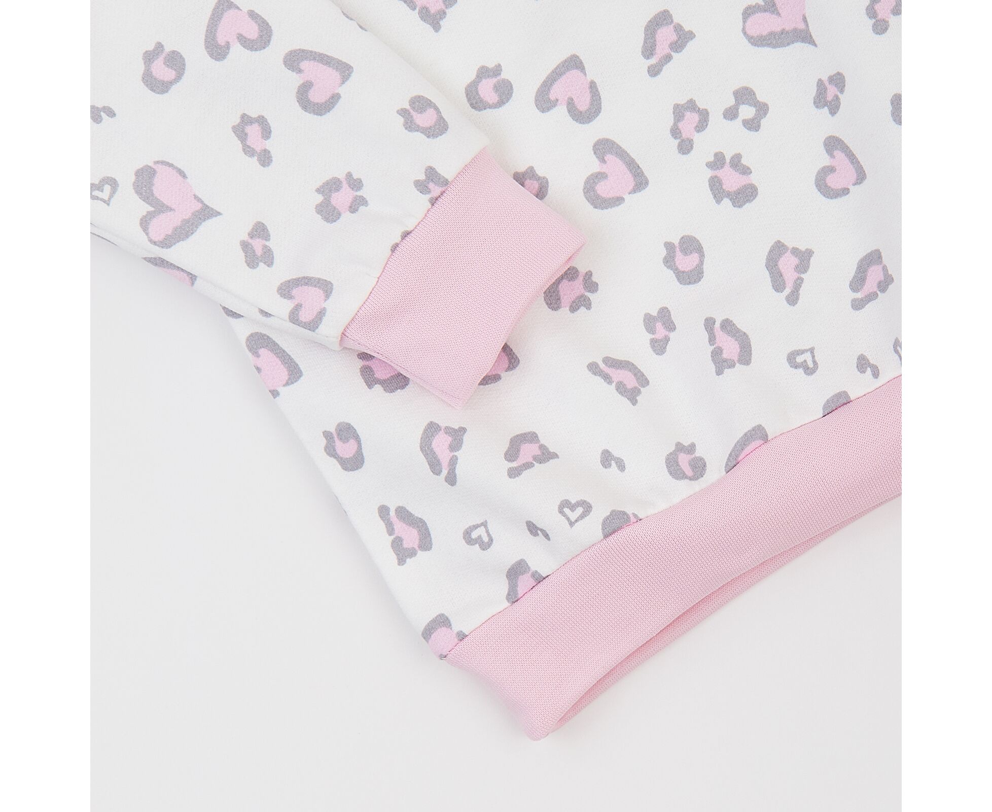 Теплий дитячий комплект домашнього одягу (піжама), з м'якого, дуже приємного на дотик футеру з начосом, що добре тримає форму навіть після багаторазового прання та не скачується. Реглан з еластичною планкою по круглому вирізу горловини,з застібкою в плечовому шві на кнопки. По низу реглану та по низкам рукавів манжети з еластичної рібани. Штани з цільнокроєним поясом з продітою гумкою, довжину якої можна регулювати. По низу штанів манжети з еластичної рібани.