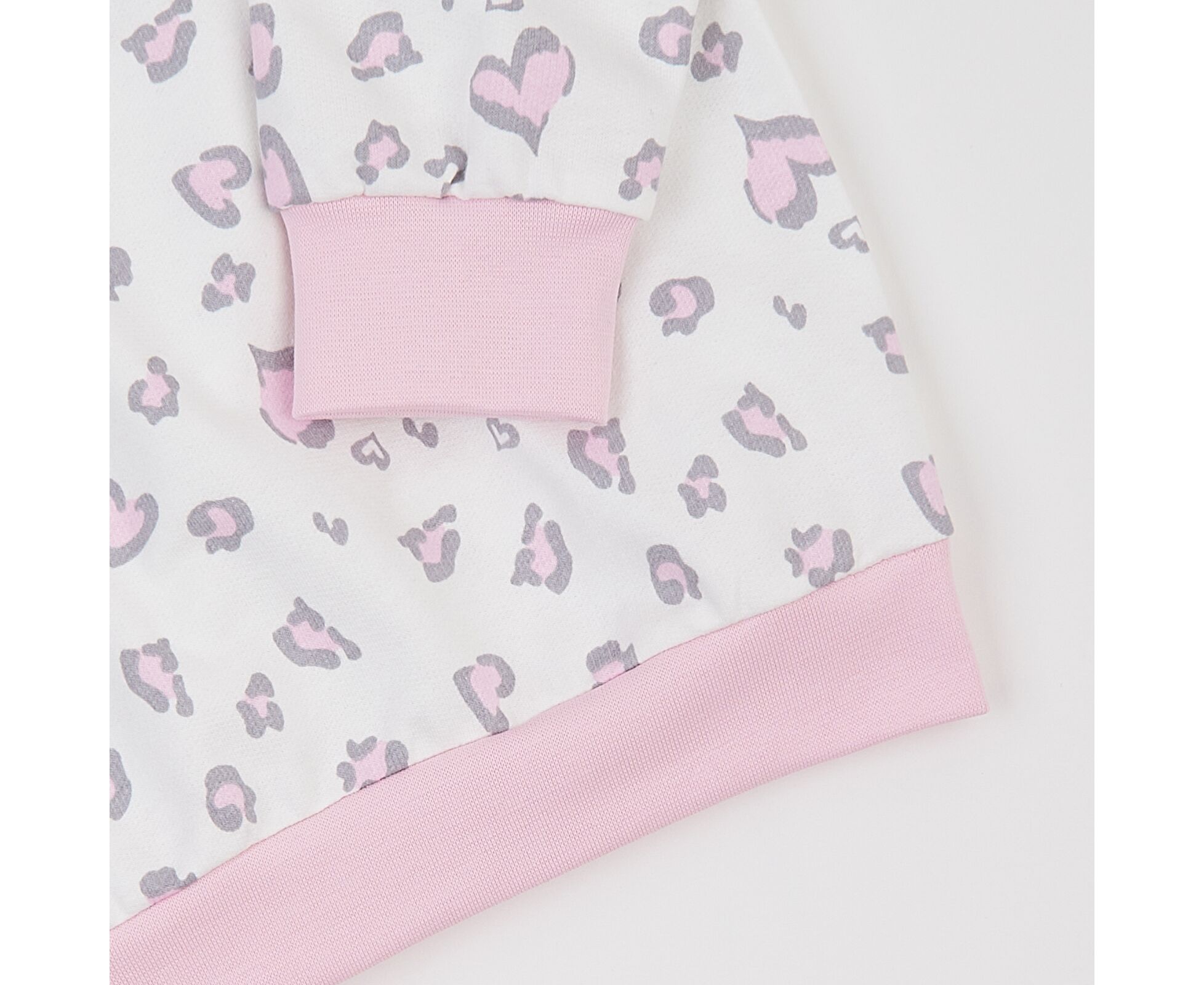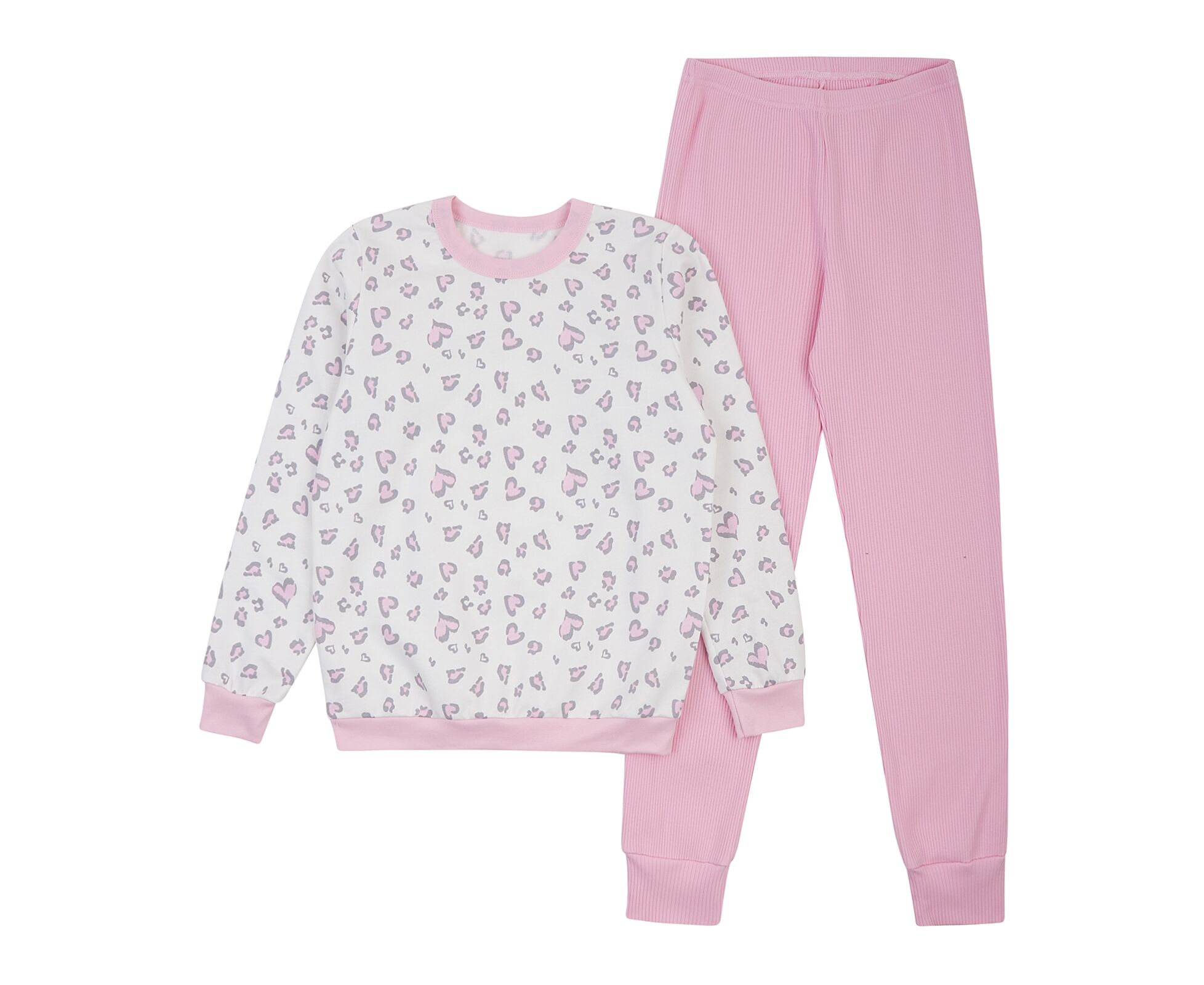Теплий дитячий комплект домашнього одягу (піжама). Світшот з м'якого, дуже приємного на дотик принтованого футеру з начосом, що добре тримає форму навіть після багаторазового прання та не скачується. Штани однотонні, з м'якенького еластичного рубчику з начосом Світшот з еластичною планкою по круглому вирізу горловини, без застібки. По низу світшоту та по низкам рукавів манжети з еластичної рібани. Штани з цільнокроєним поясом з продітою гумкою, довжину якої можна регулювати. По низу штанів манжети з еластичної рібани.