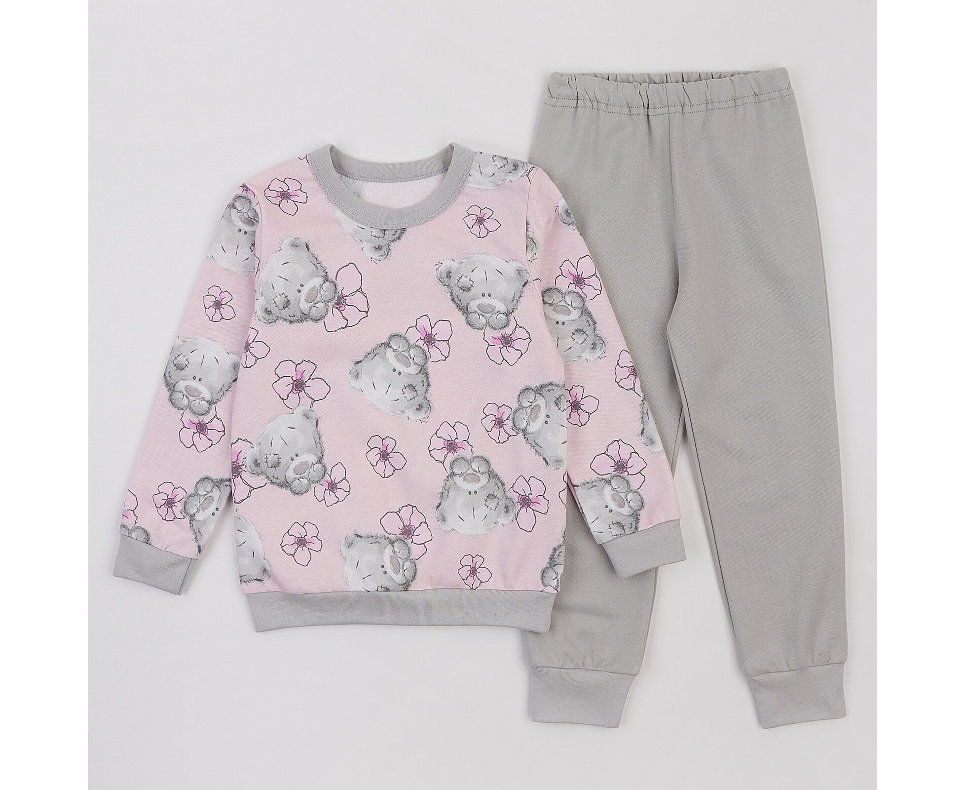 ведмедики тедді на рожевому+св.сірий 116 (5-6 років) для дівчинки рожевий футер двонитка Пижамы/Пижамы 116