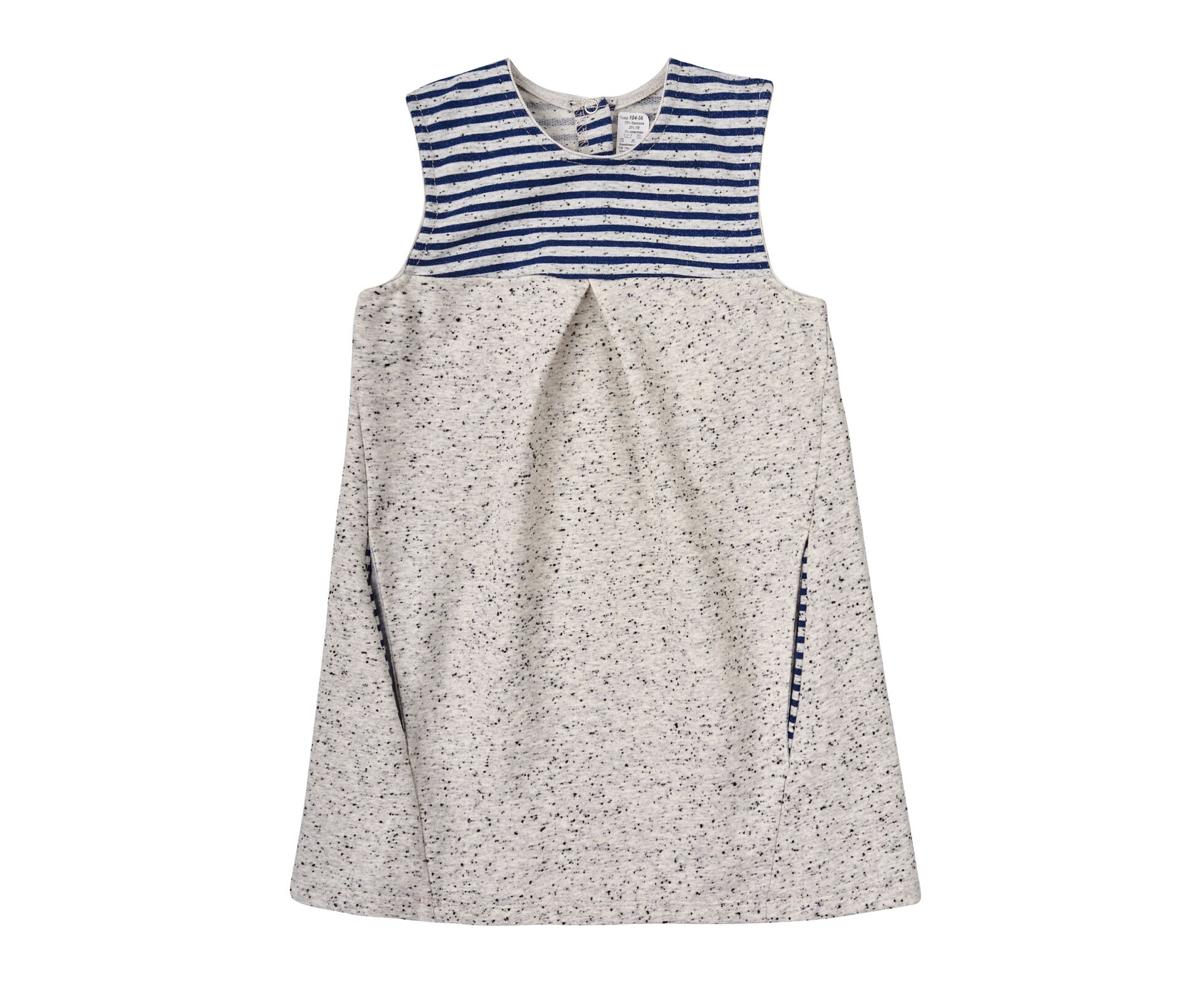 Стильний сарафан з двонитки-петлі, яка добре тримає форму навіть після багаторазового прання. Перед та спинка з кокетками. Посередині кокетки спинки застібка на кнопки. Виріз горловини круглий, оброблені горловина та пройми лампасом з внутрішнього боку. На переді зустрічна склада та кишені в рельєфних швах.