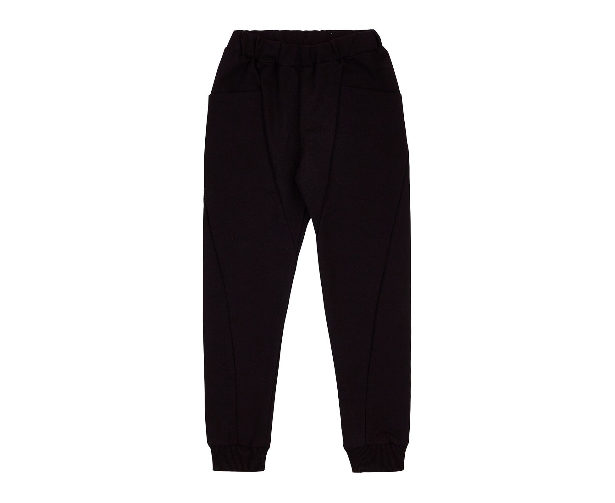 Дитячі штани з якісної темно-синьої двонитки, яка добре тримає форму навіть після багаторазового прання та не скачується. Зпереду в оригінальних скошених підрізах вмісткі глибокі кишені. Притачний пояс з еластичною тасьмою, а також з функціональним фіксуючим шнуром, продітим через люверси. По низу штанів манжети з еластичного рубчику.
