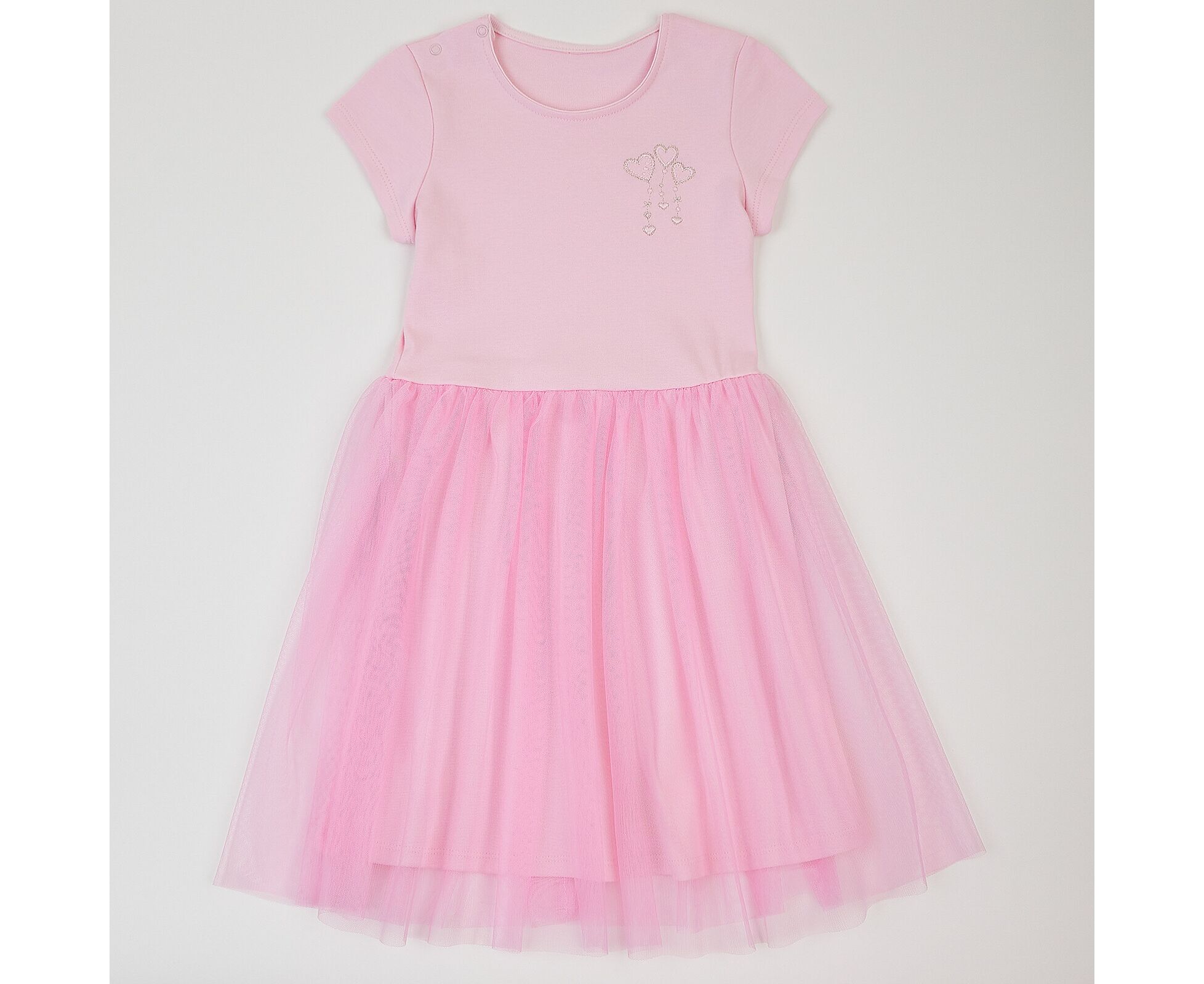 Стильна рожева сукня з ошатним низом стане улюбленою сукнею вашої донечки! Як на свято, так і в будні вона виглядатиме неперевершено, та, в той же час, почуватиметься неймовірно зручно. Сукня виготовлена з бавовняного інтерлока, присборена по талії спідничка з м'якої євросітки. Ліф сукні прикрашений невеликою блискучою вишивкою на переді. Сукня з втачним рукавом, застібкою по плечу на кнопки. По внутрішньому шву горловини оздоблювальний лампас з бавовняної рібани.