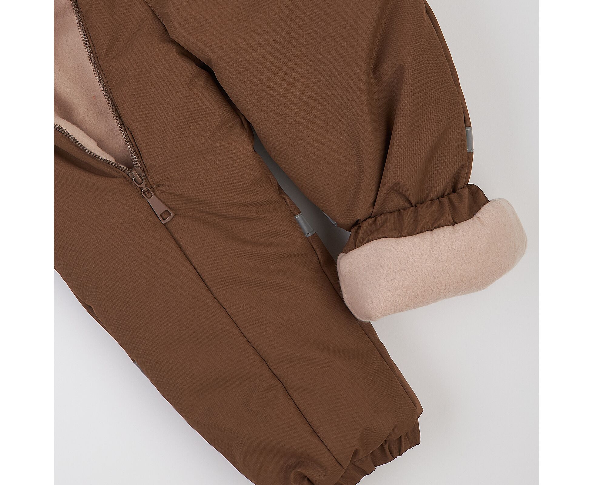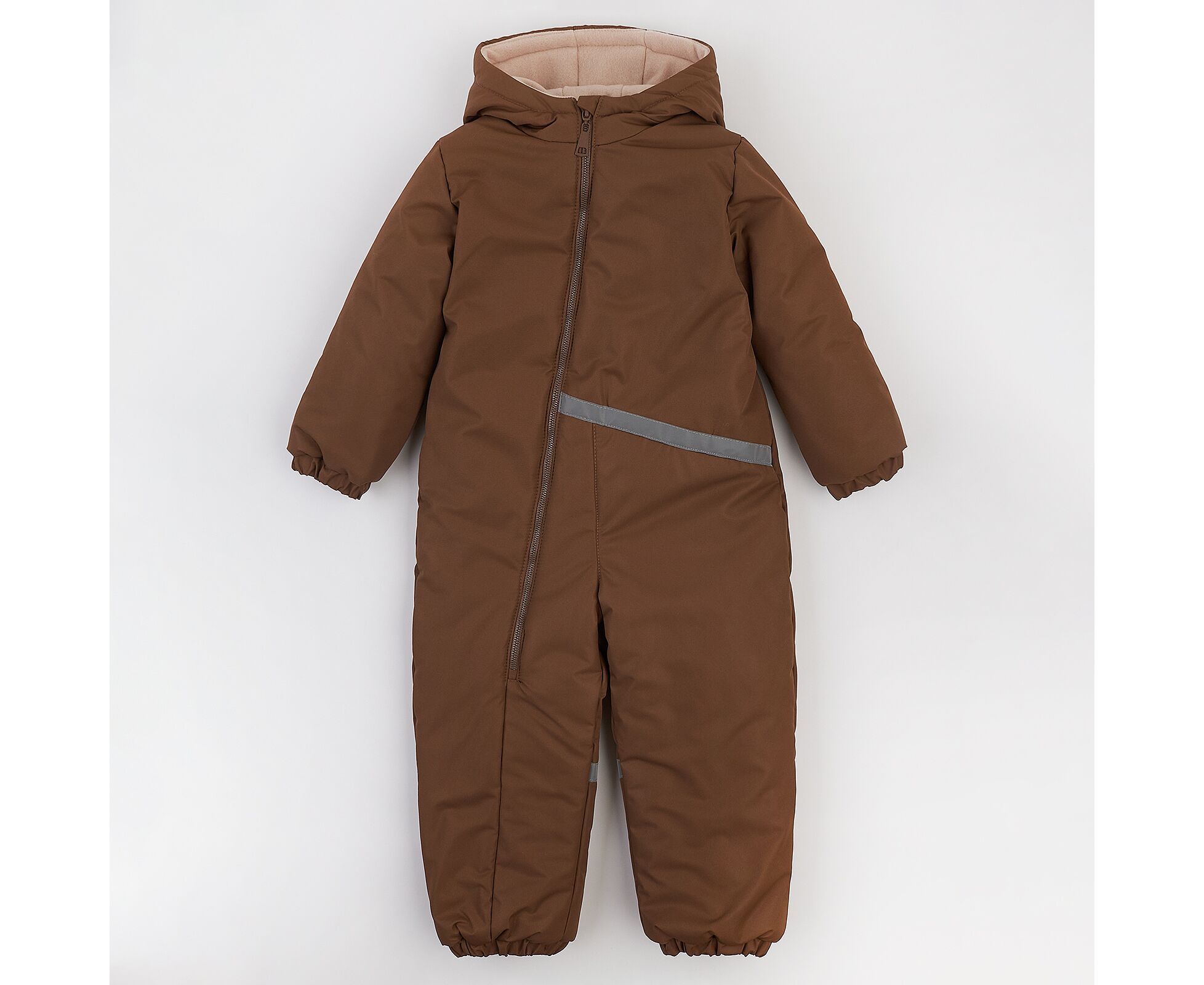 Зимовий дитячий комбінезон від українського виробника "Ляля". Комбінезон з каптуром із щільної вологовідштовхувальної плащовки ,на флісі з утеплювачем синтепух щільністю 250г/кв.м. , який зберігає форму та об'єм, навіть після багаторазового стиснення та забезпечує тепло навіть при сильних морозах. Застібка асиметрична по переду на якісну блискавку, низ ніжок та рукавів на еластичній тасьмі. Деталі переду та спинки оздоблені світловідбивними елементами. Для полегшення надягання на дитину виворіт рукавів з гладкої тканини підкладки.